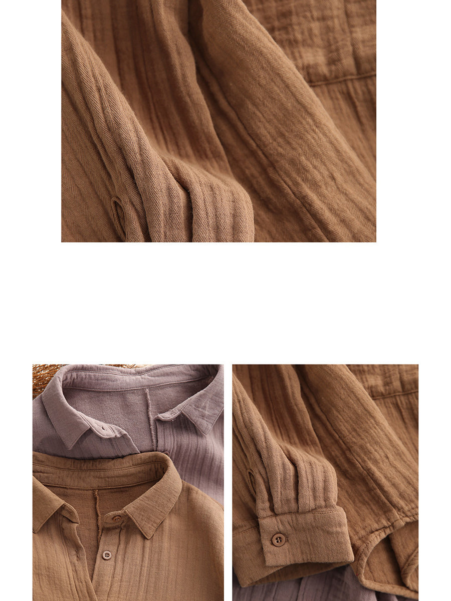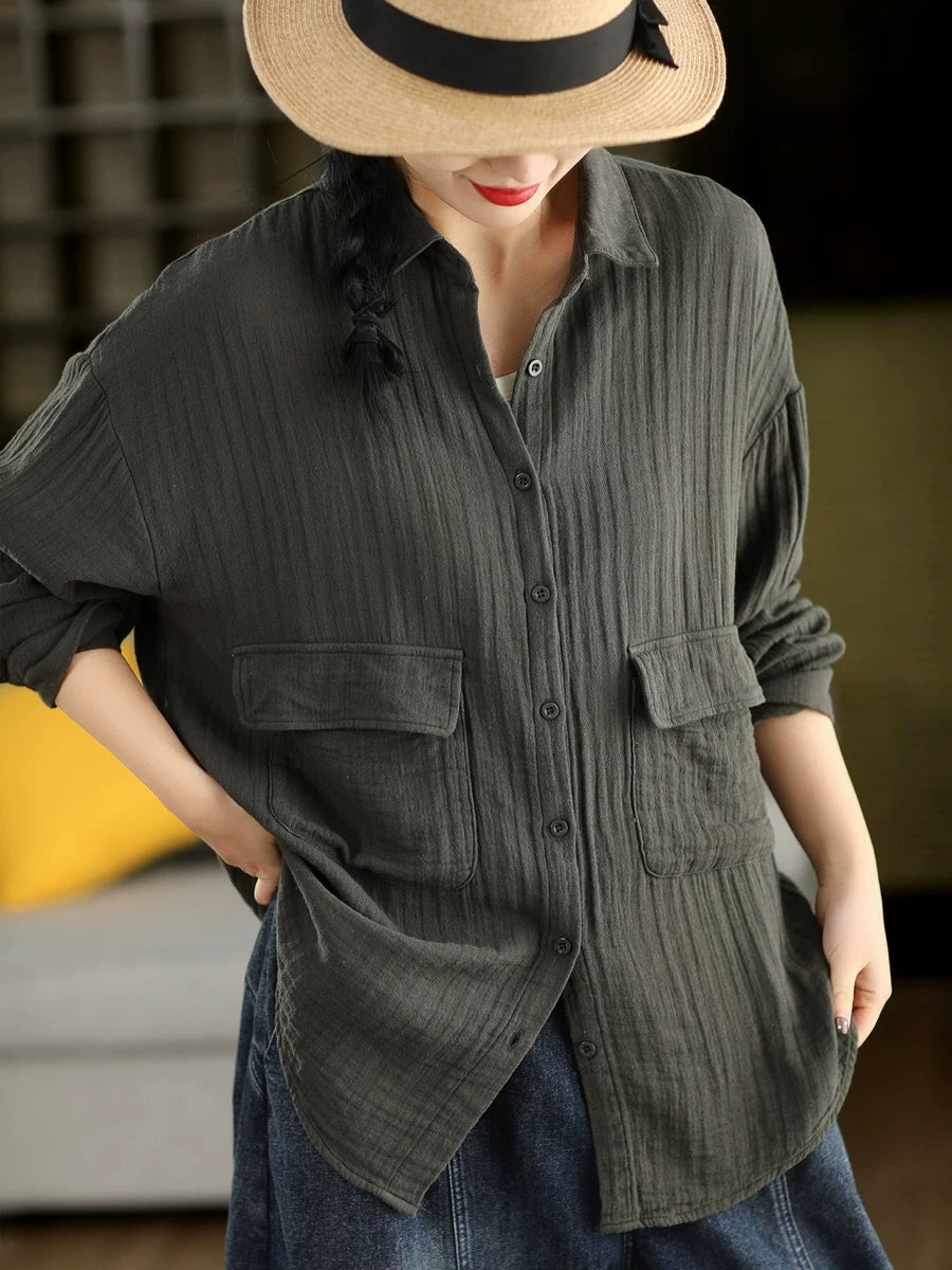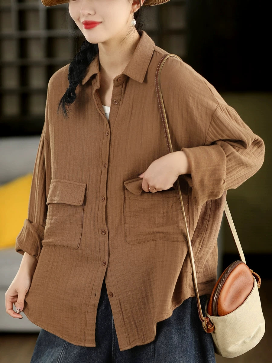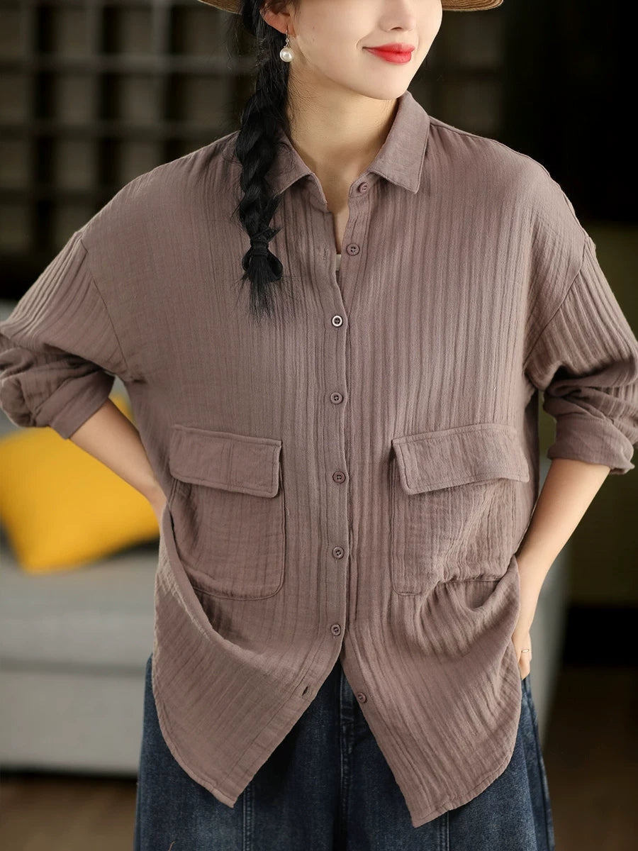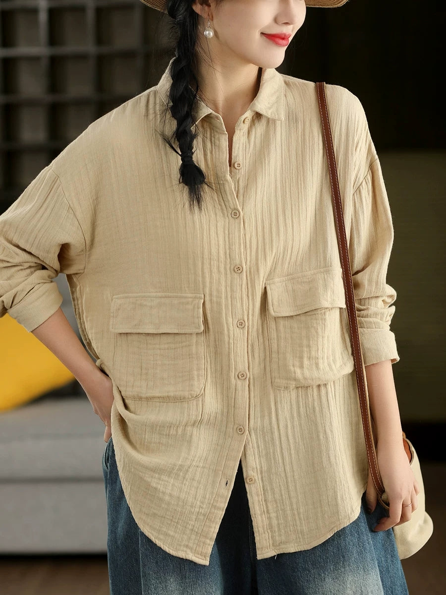 Women Spring Artsy Pure Color 100%Cotton Shirt