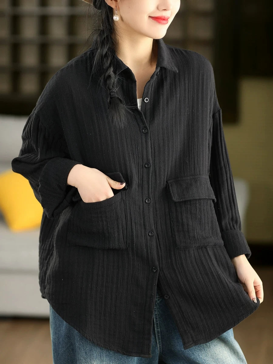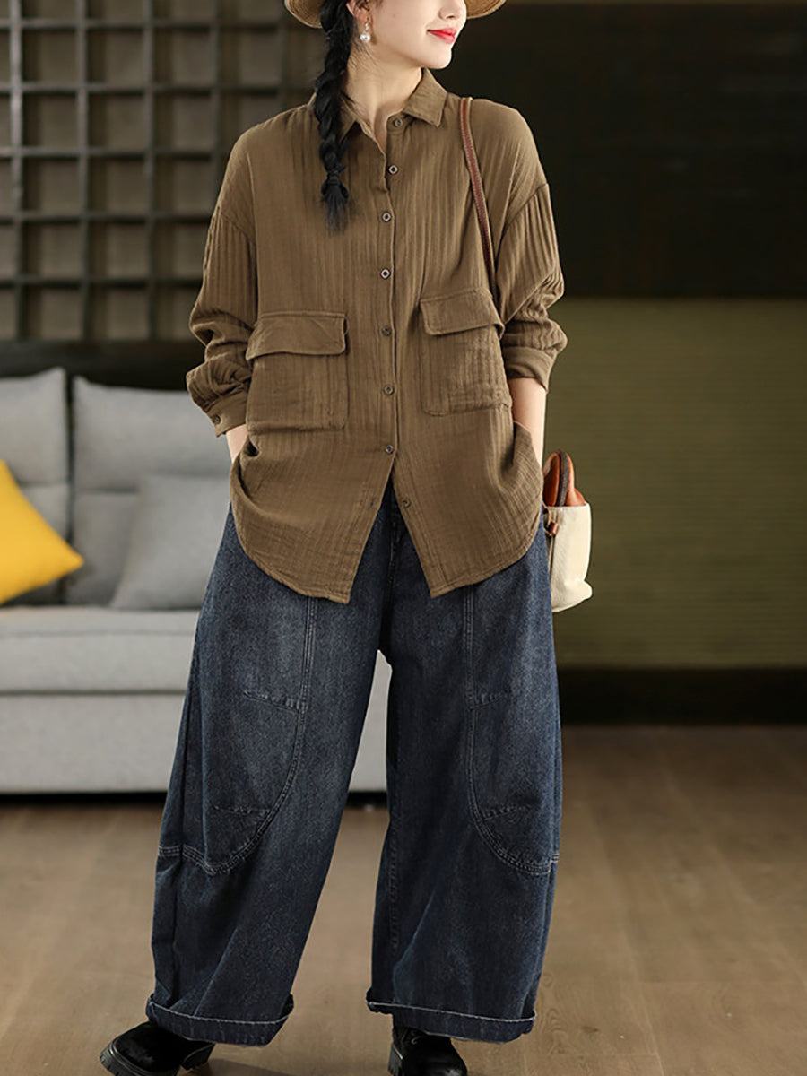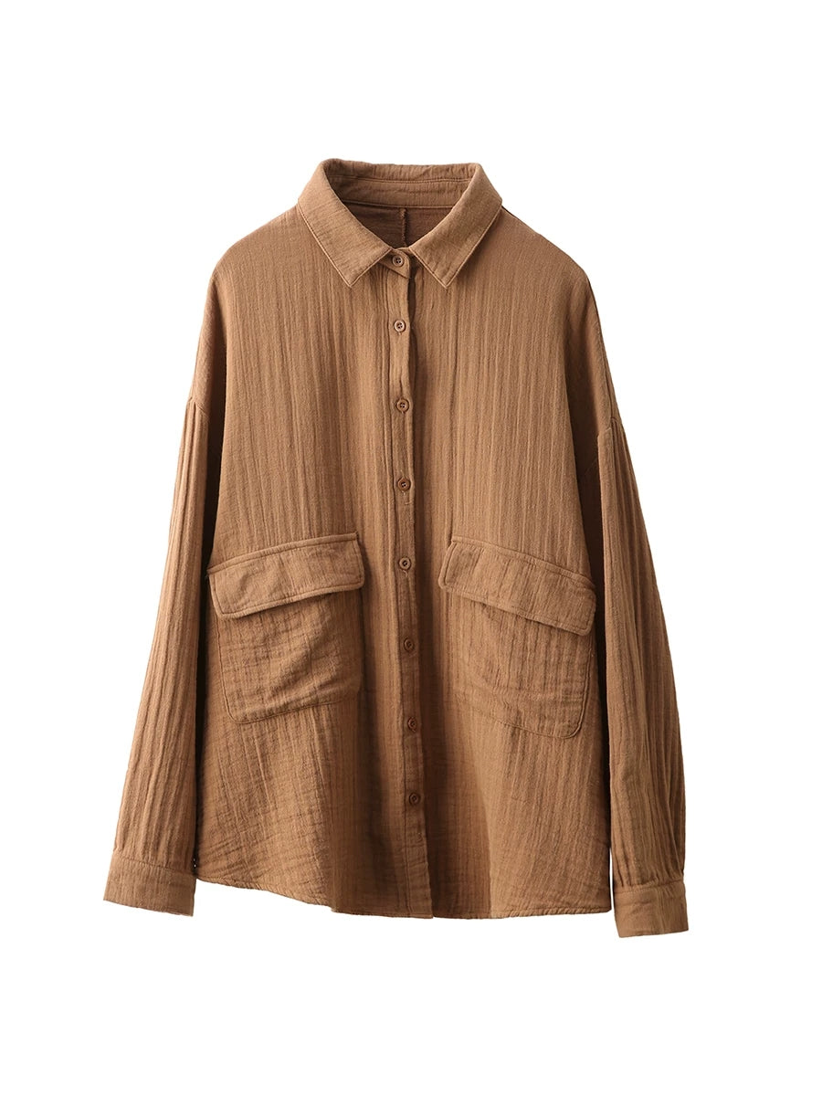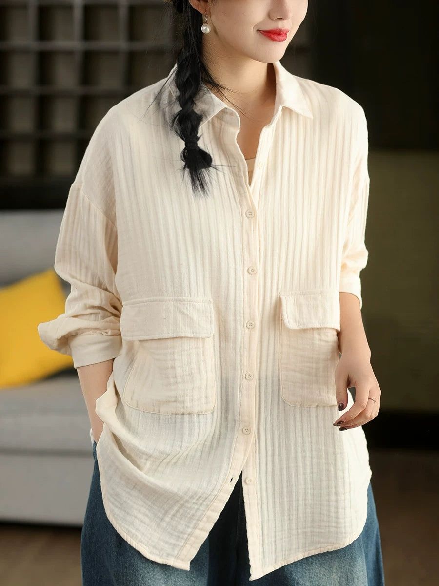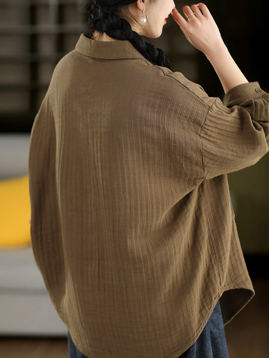 Women Spring Artsy Pure Color 100%Cotton Shirt
