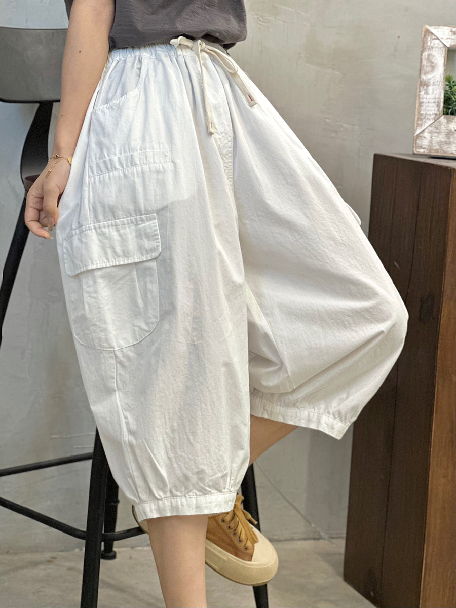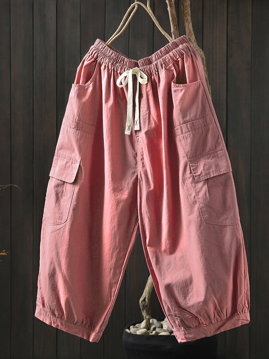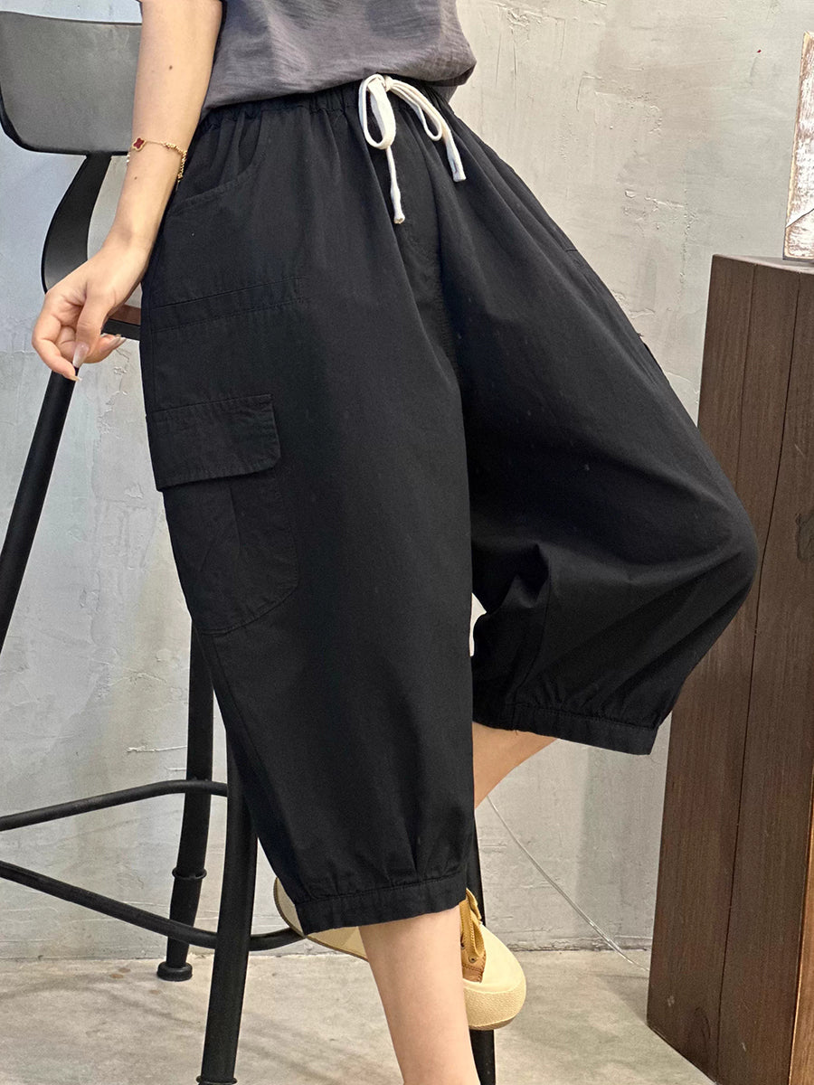 Plus Size Women Summer Casual Pure Color Cotton Capri Pants