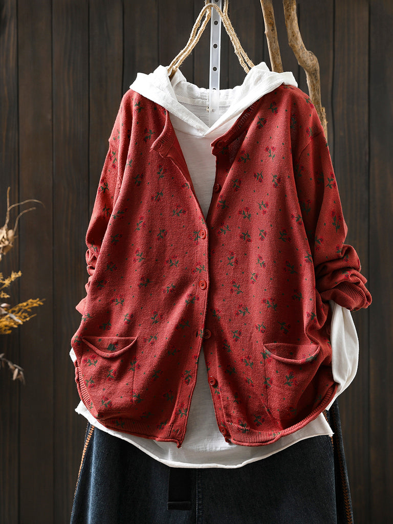 Women Autumn Artsy Floral Knitted O-Neck Sweater