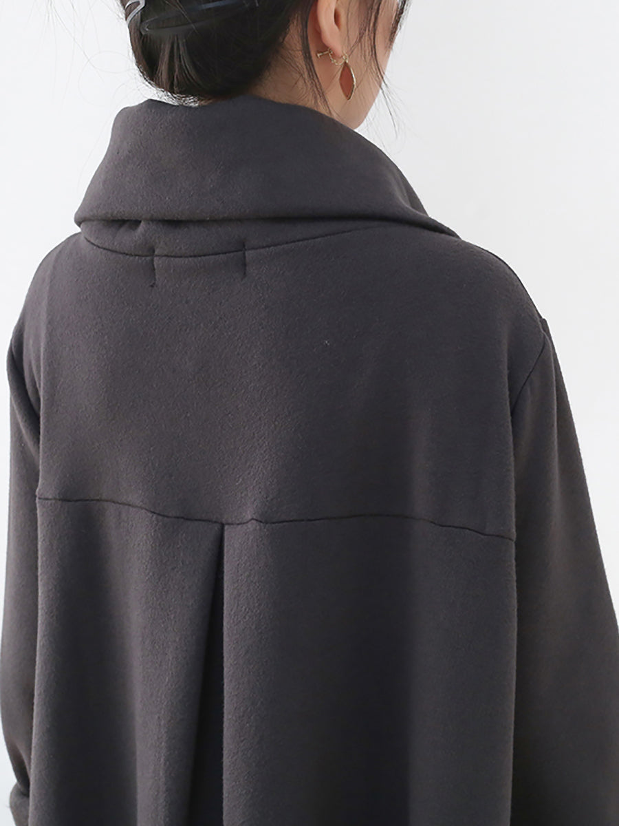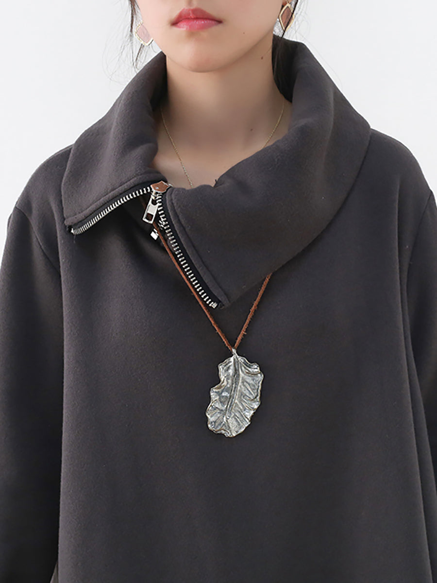 Plus Size Women Autumn Pure Color Turtleneck Cotton Dress