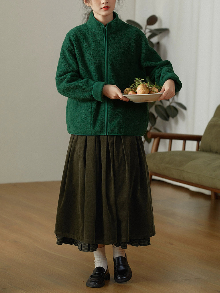 Plus Size Women Autumn Retro Plaid Spliced 100%Cotton Skirt