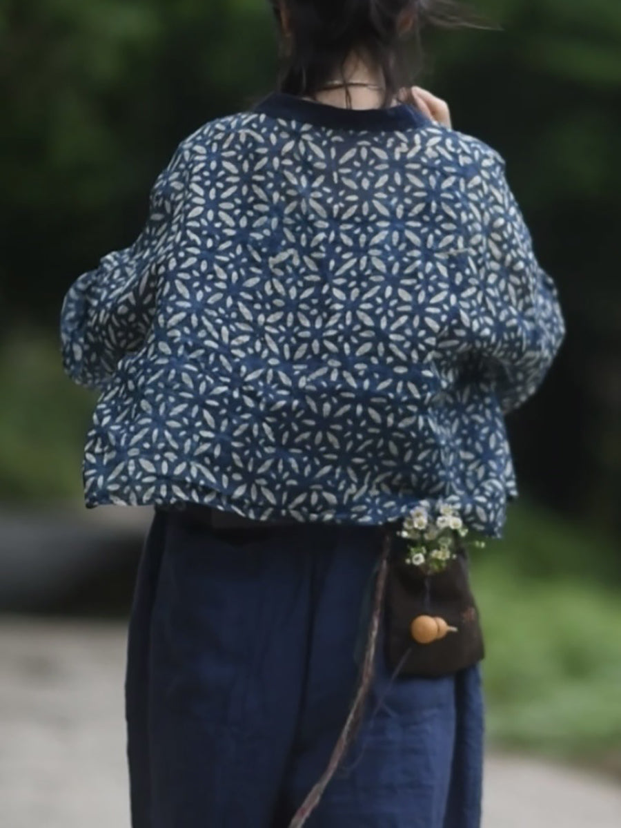Women Summer Retro Flower V-Neck Strap Raime Shirt
