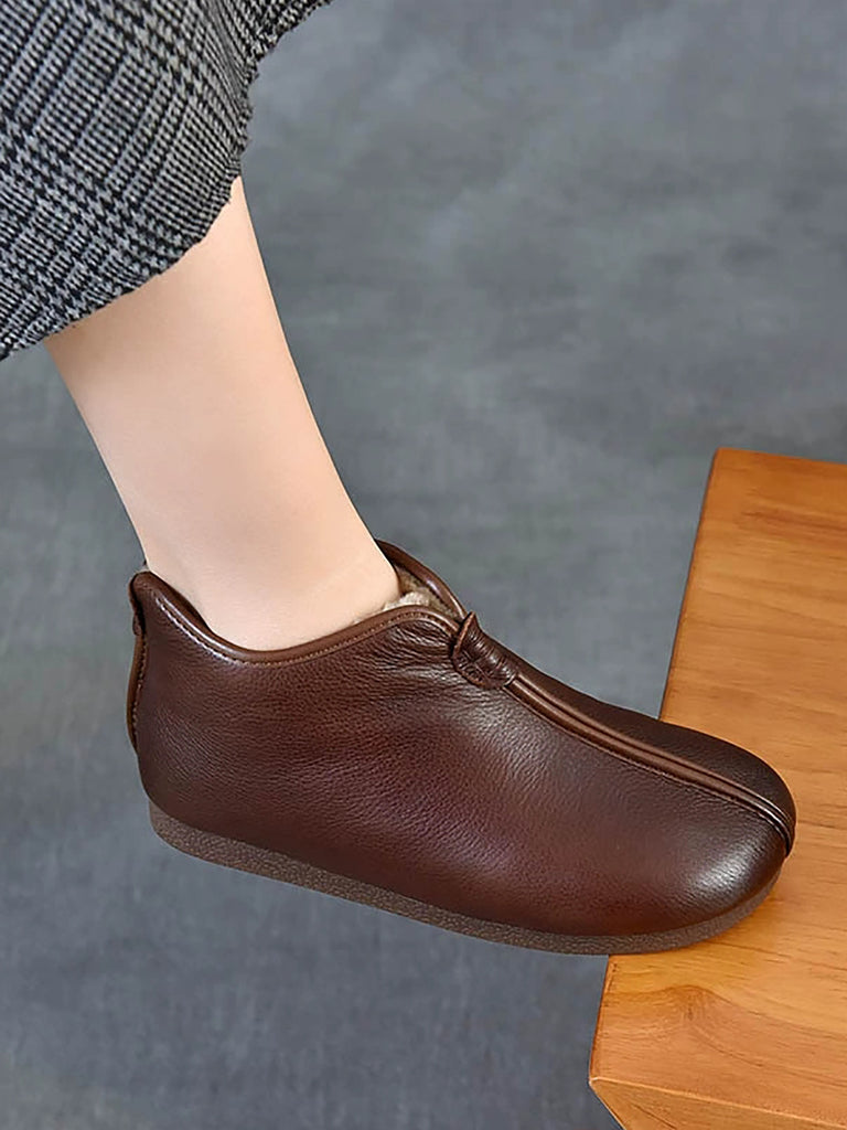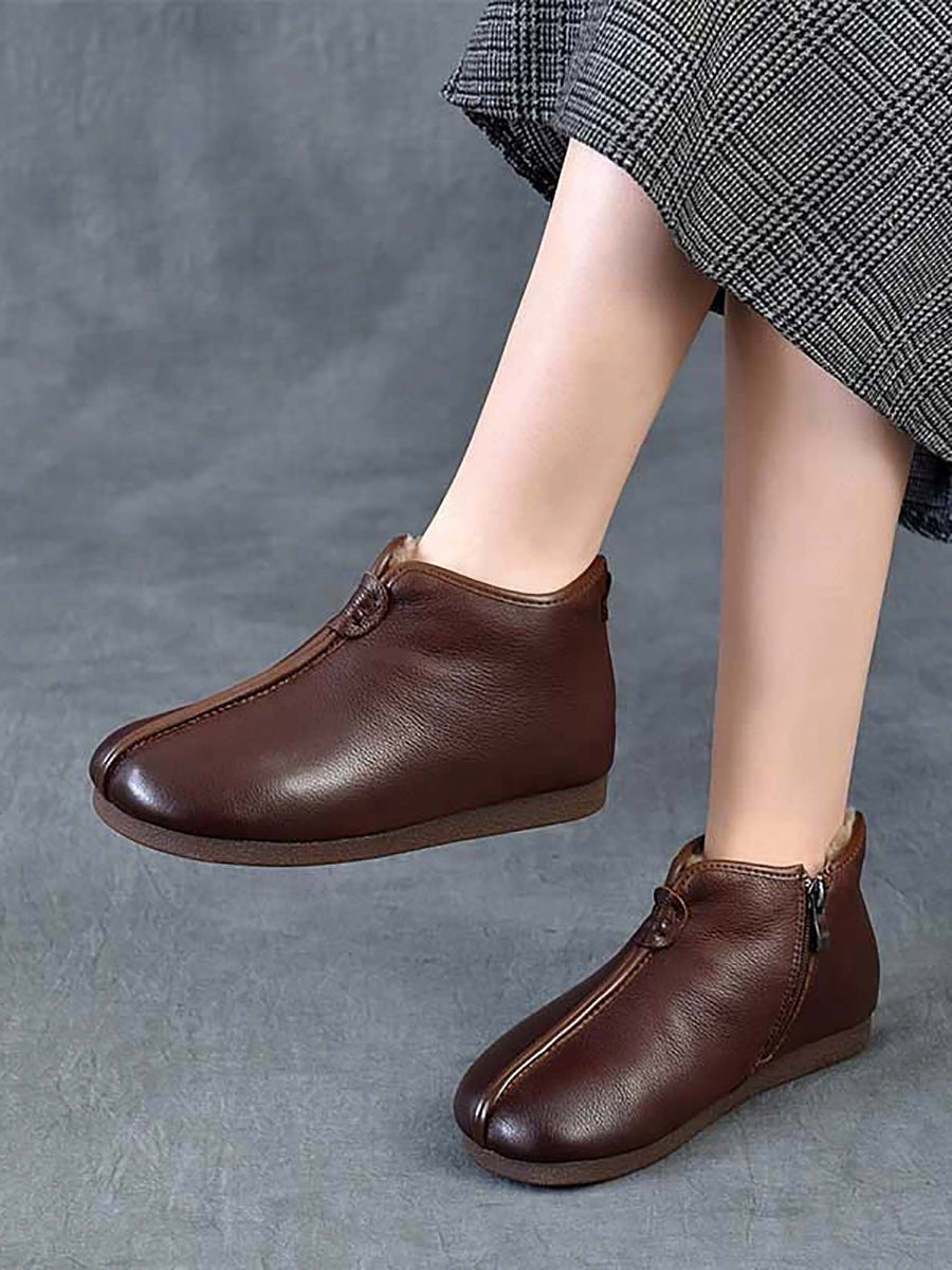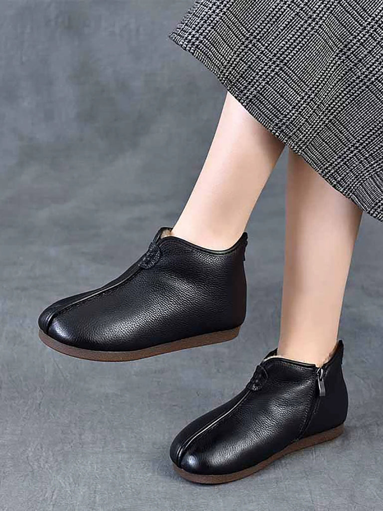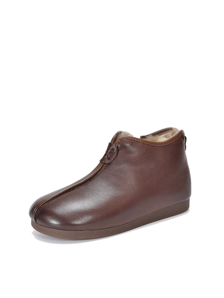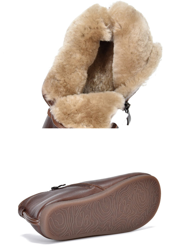 Women Winter Genuine Leather Fleece-lined Ankle Boots