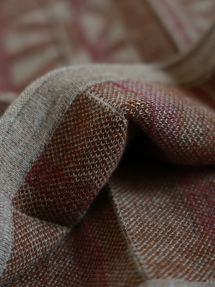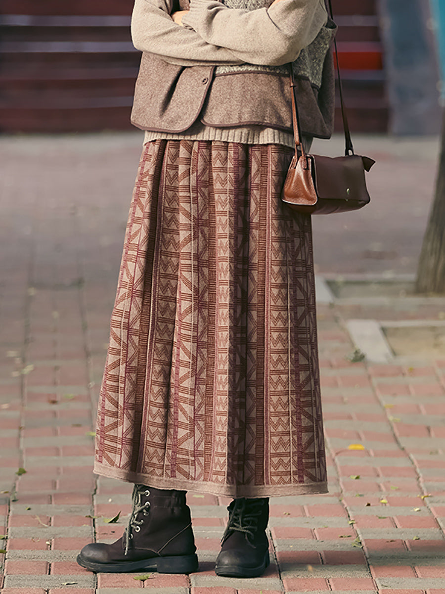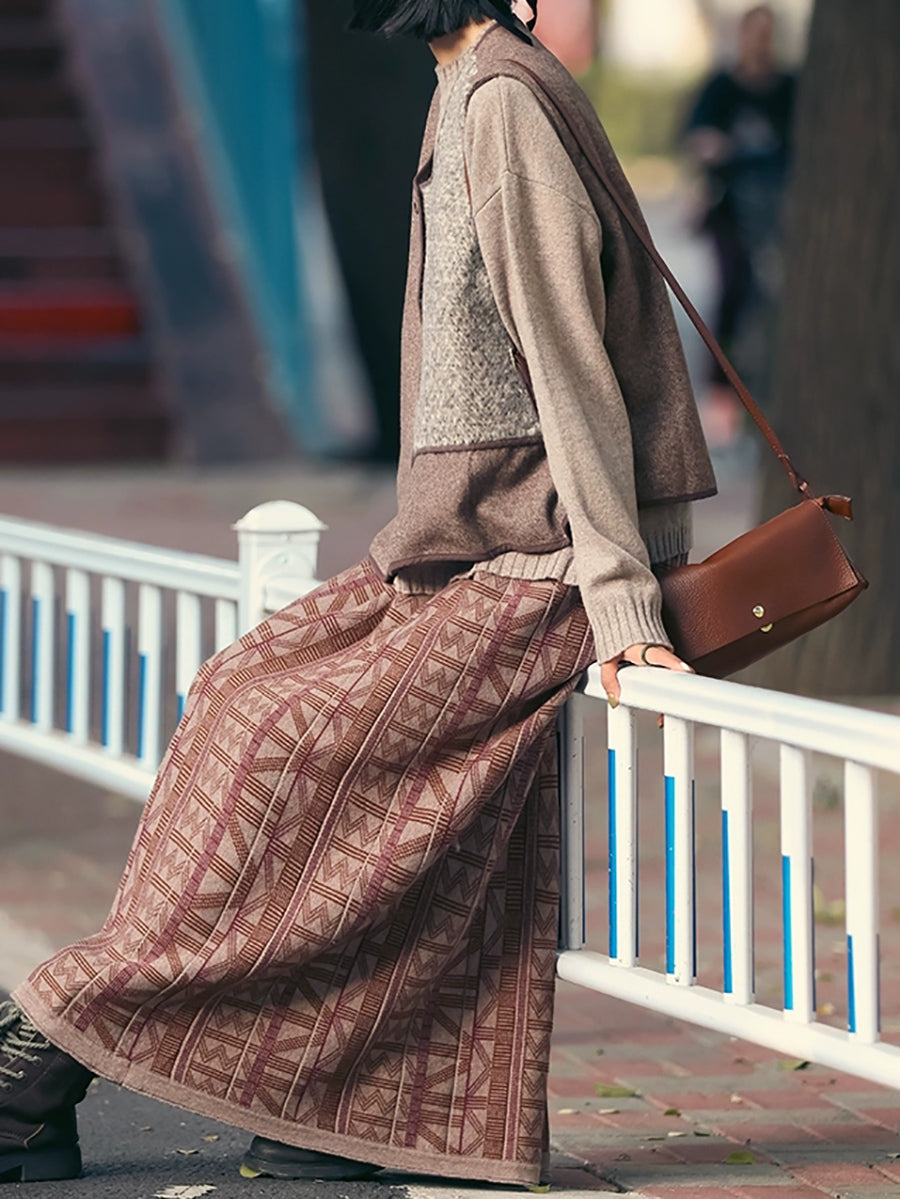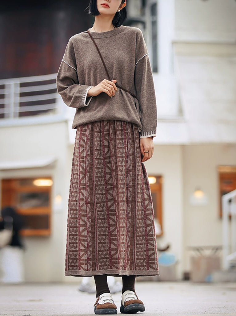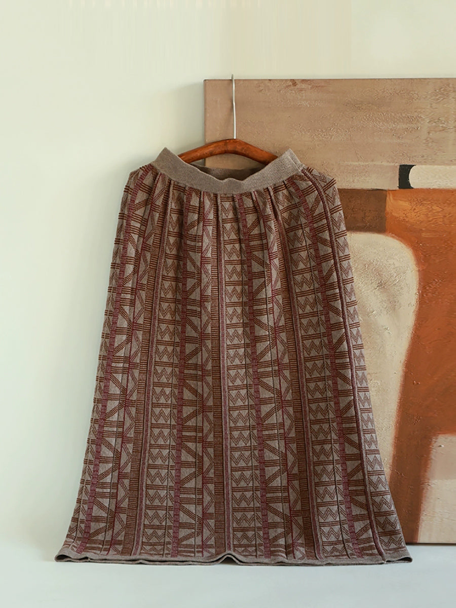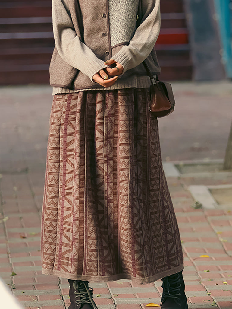 Women Autumn Retro Jacquard A-Shape Cotton Skirt