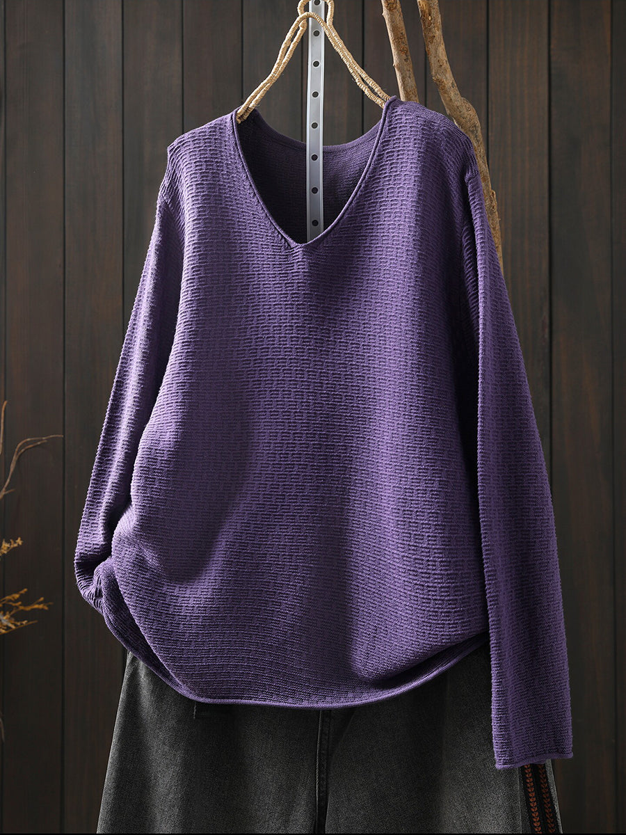 Women Casual Spring Pure Color V-Neck Sweater