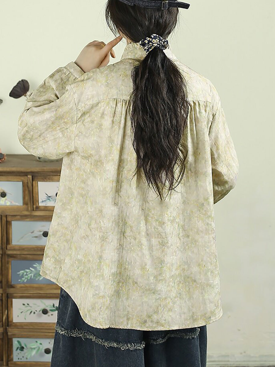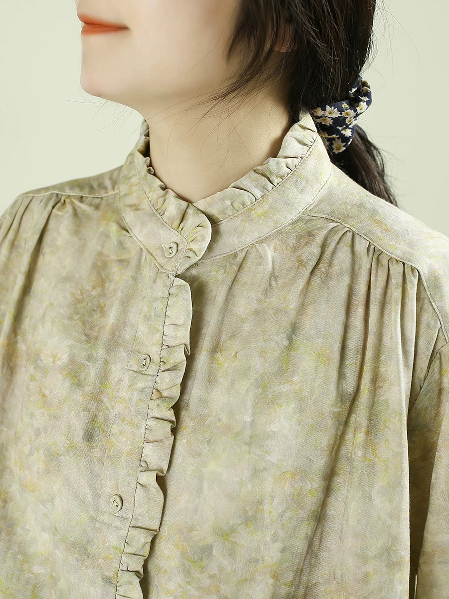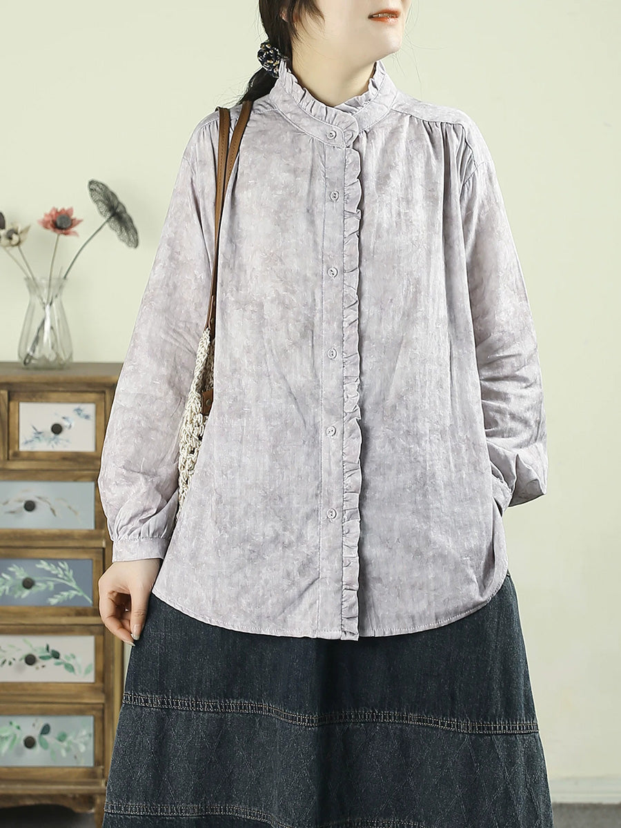 Women Spring Artsy Tie-dye Stand Collar 100%Cotton Shirt