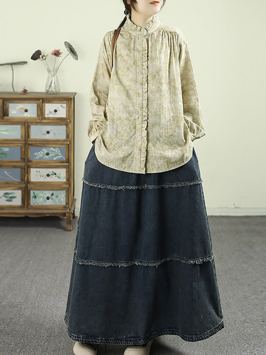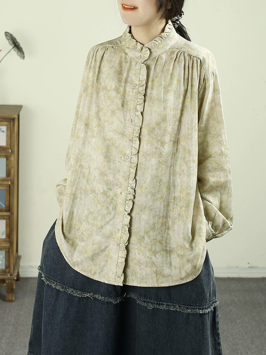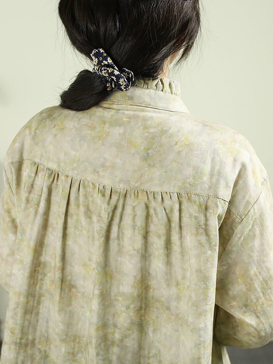 Women Spring Artsy Tie-dye Stand Collar 100%Cotton Shirt
