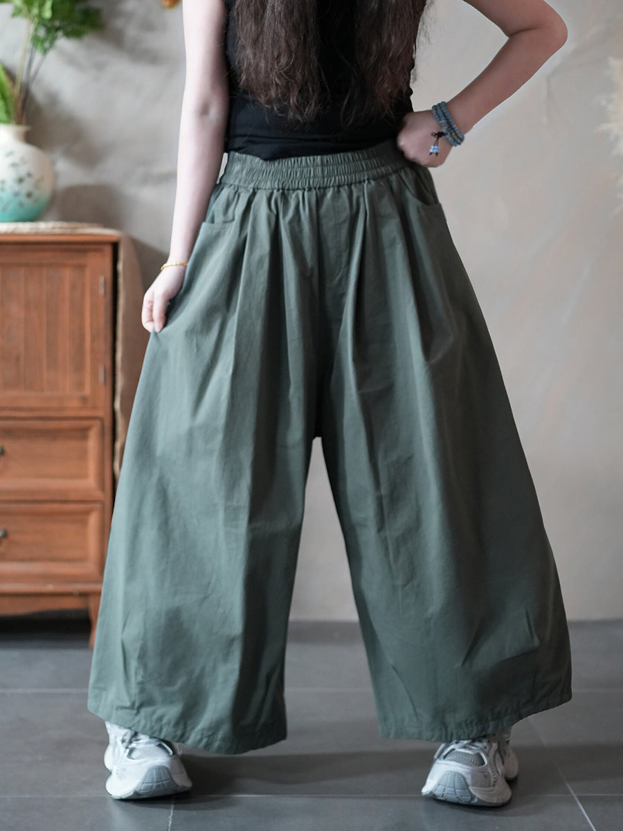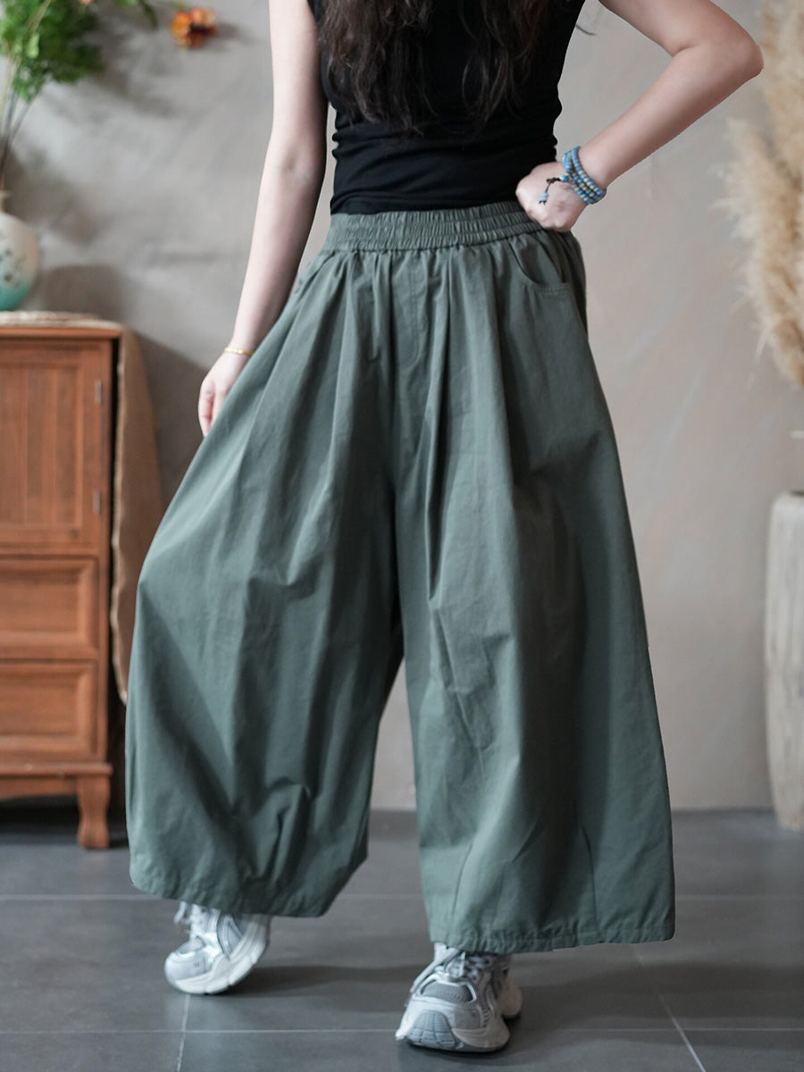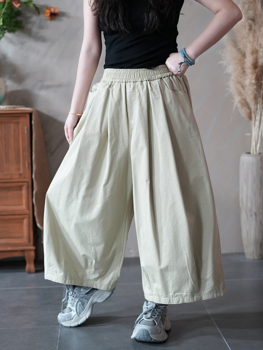 Women Spring Casual Pure Color Wide-leg Pants
