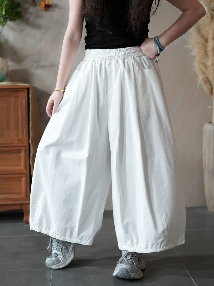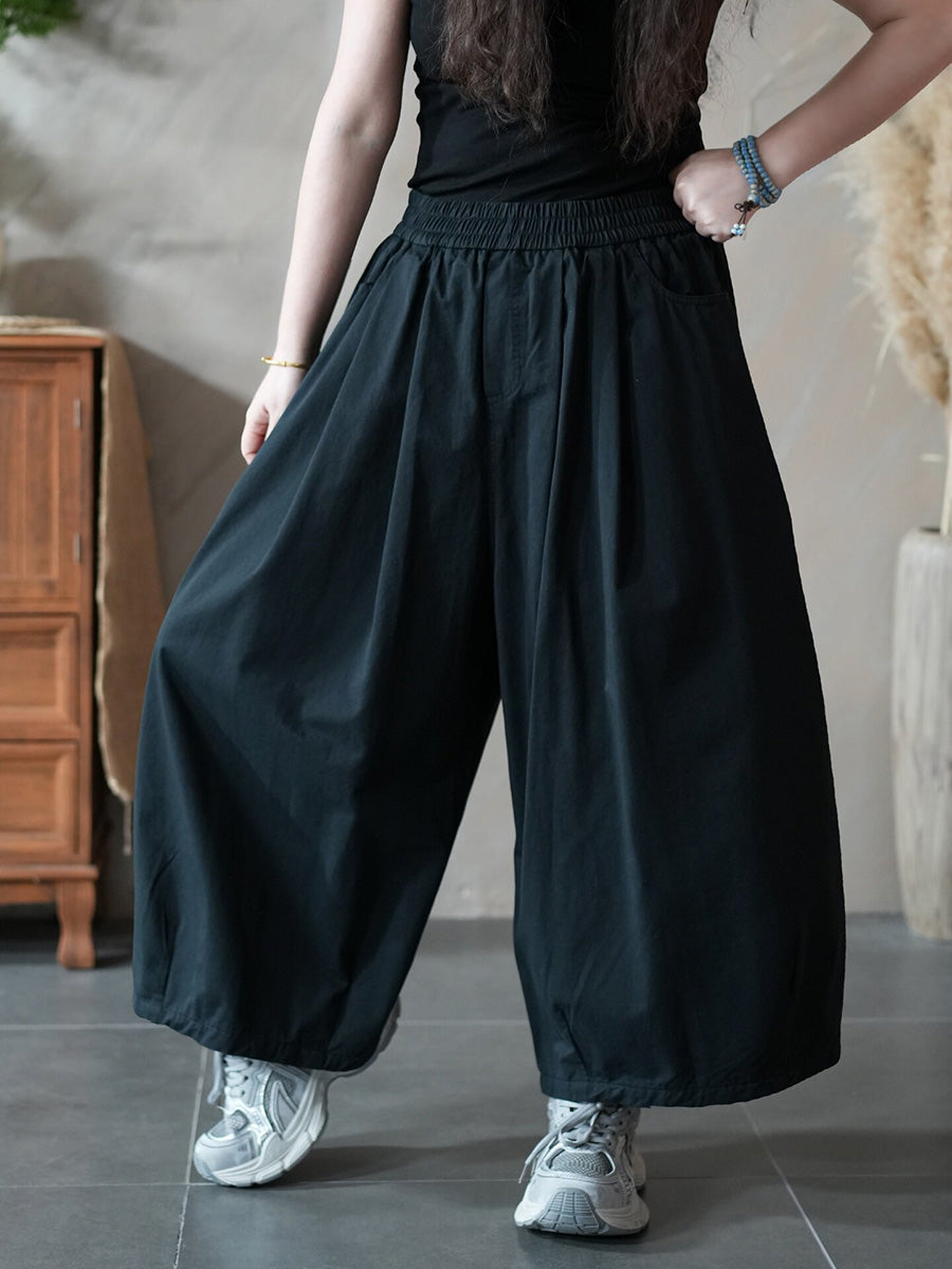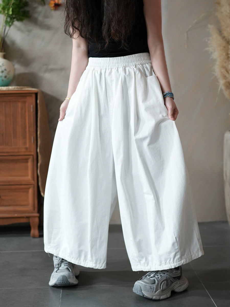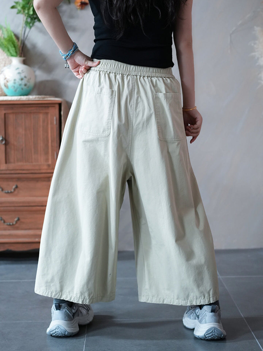 Women Spring Casual Pure Color Wide-leg Pants