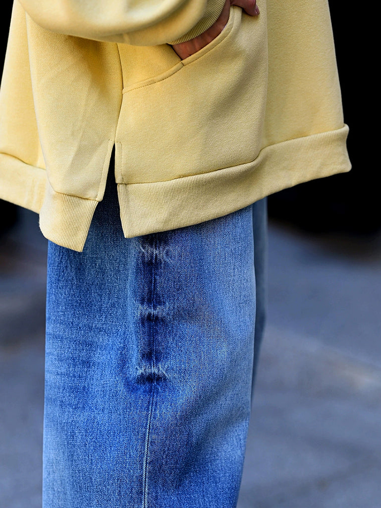 Plus Size Women Autumn Casual Pure Color Cotton Hoodie