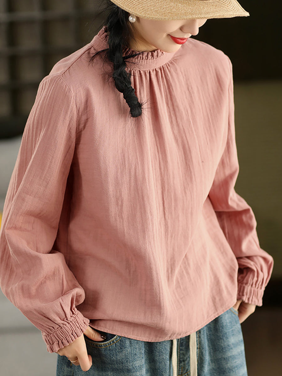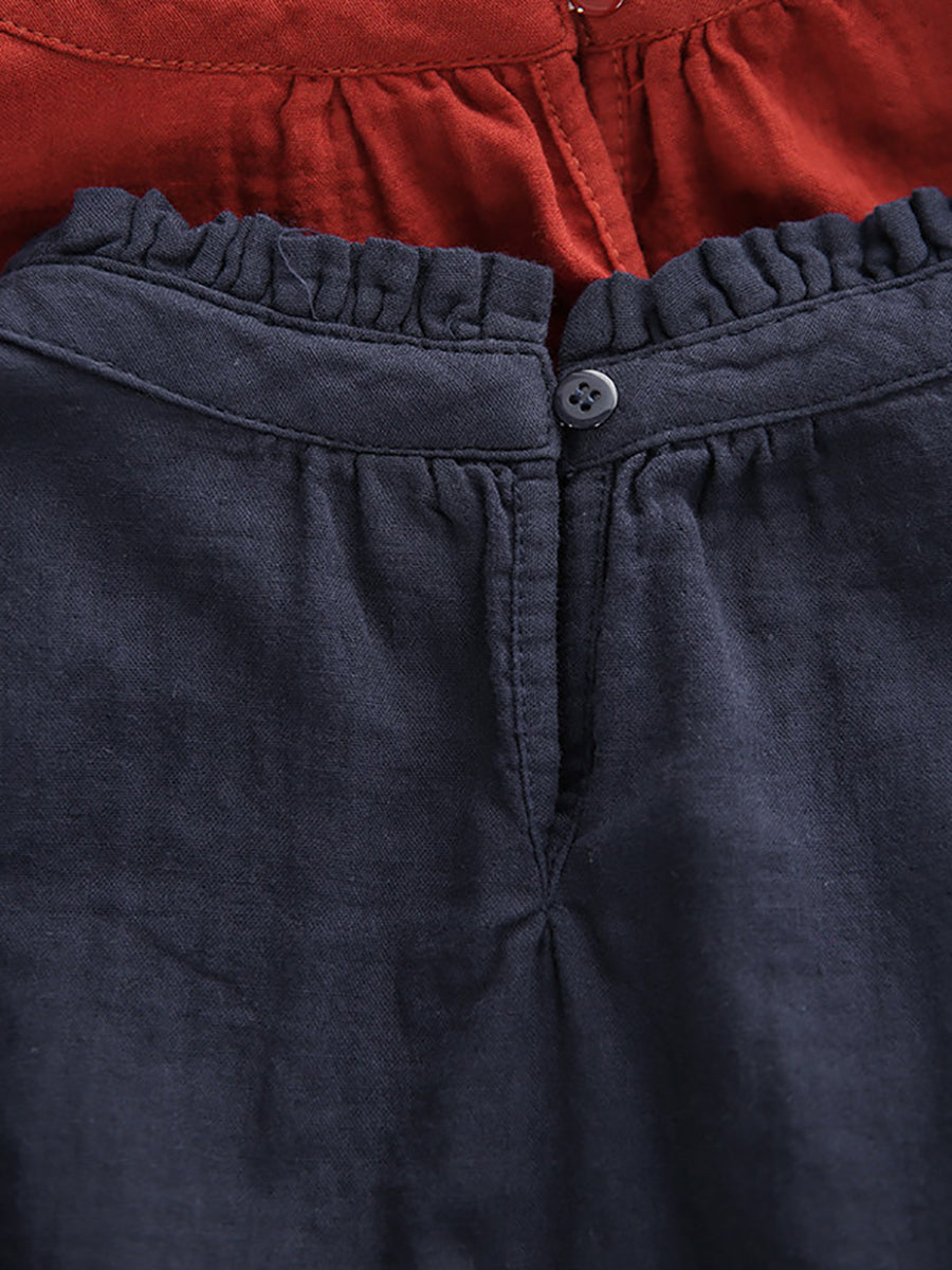 Women Summer Pure Color O-Neck 100%Cotton Blouse