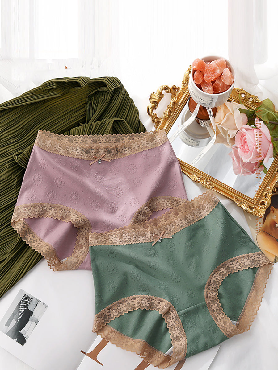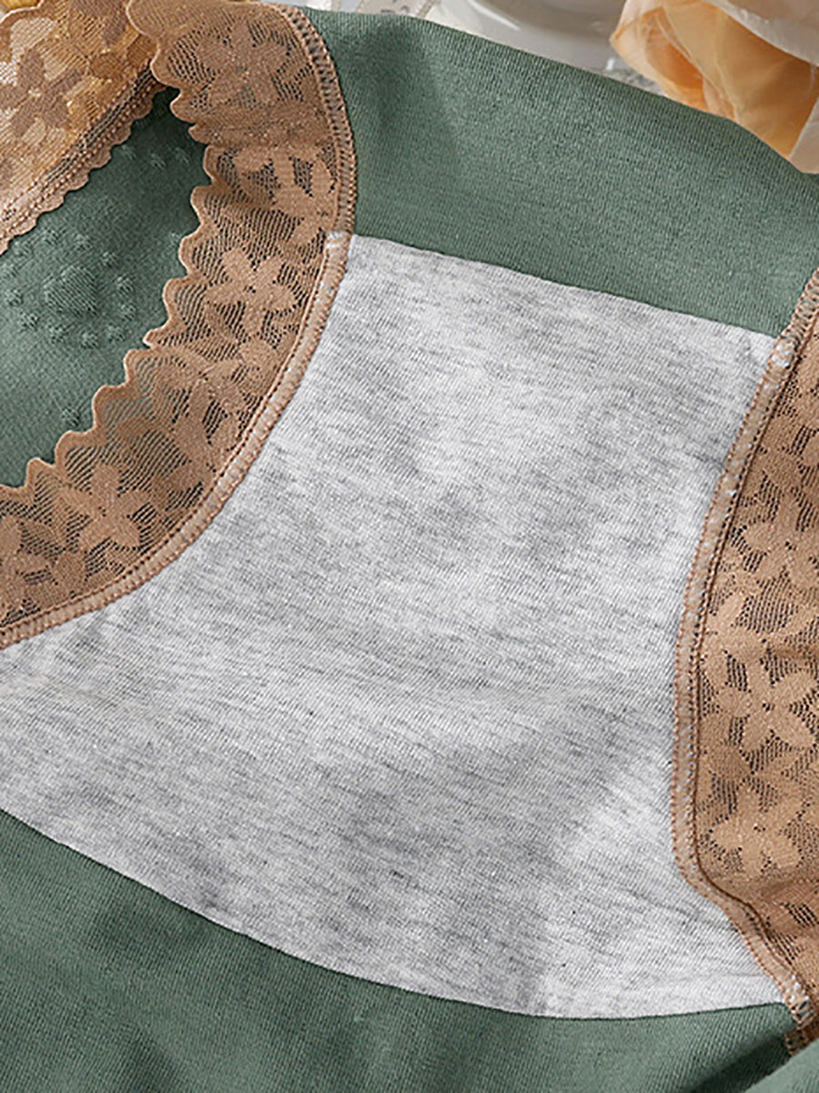 4 Pieces Women Artsy Lace Spliced High Waist Underwear
