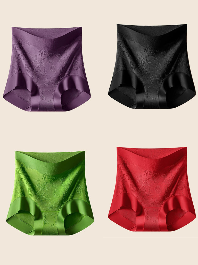 4 Pieces Women Jacquard High Waist Underwear