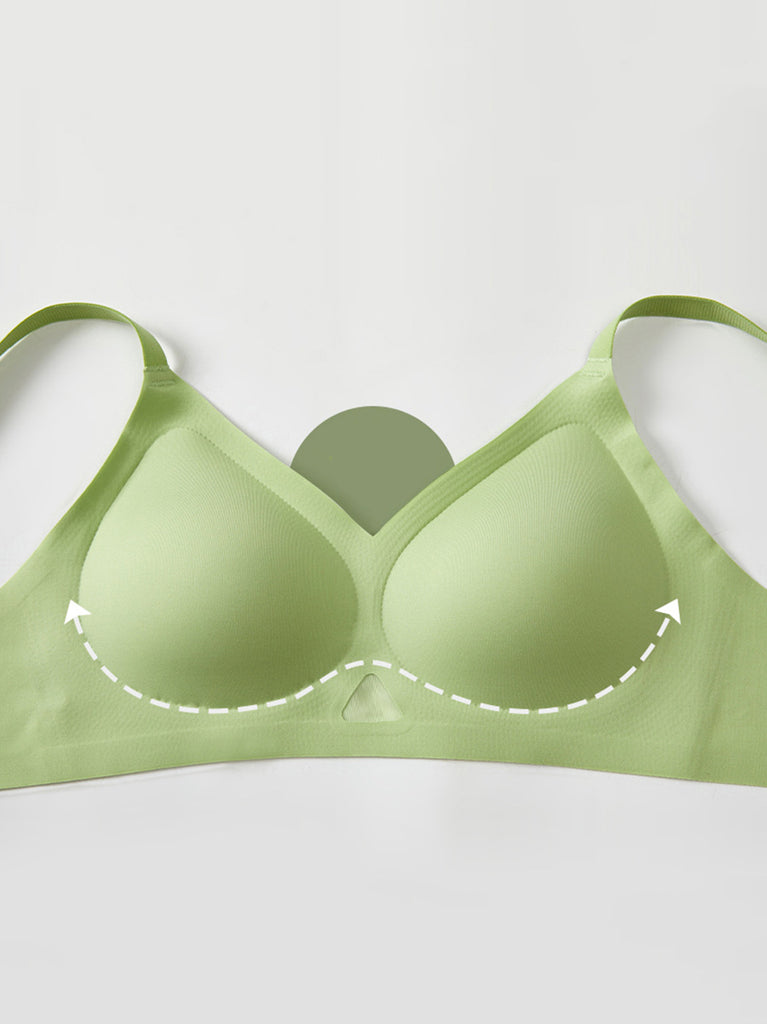 Women Artsy Pure Color Fixed Cup Satin Bra