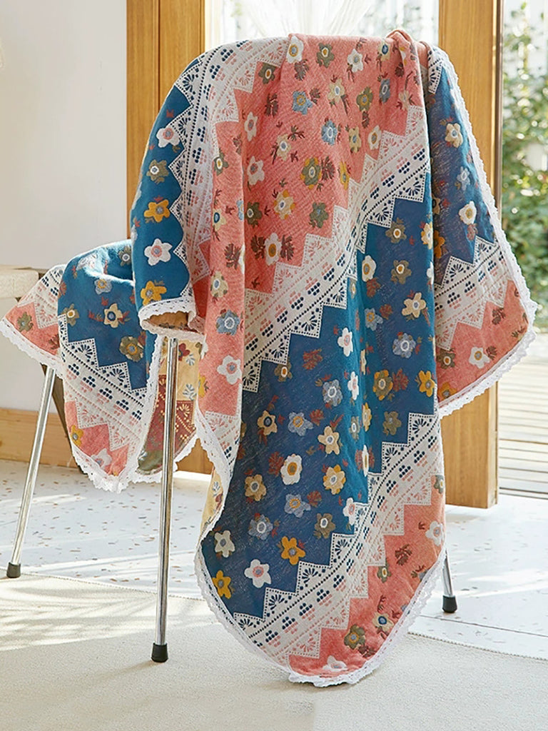 100%Cotton Flower Adult Lace Spliced Bath Towel