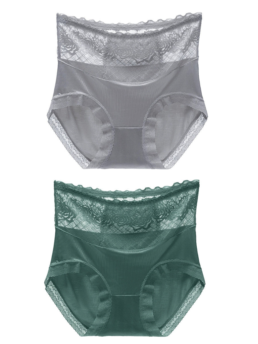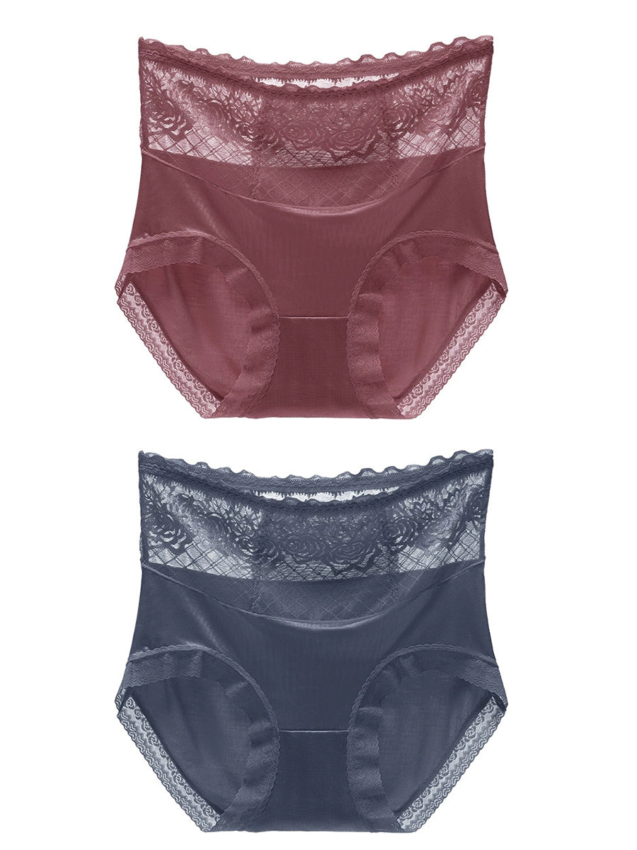2 Pieces Women Artsy Lace Spliced High Waist Underwear