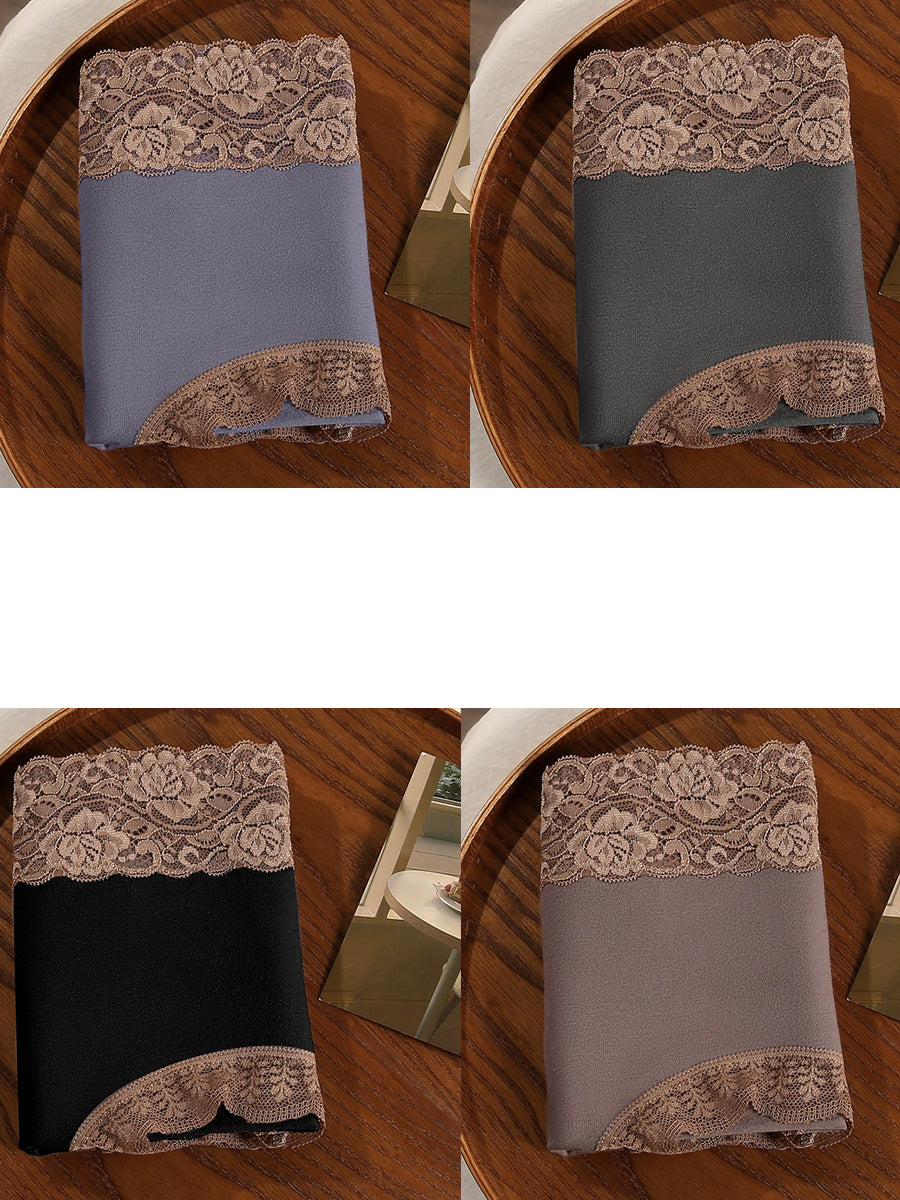 4 Pieces Women Artsy Lace Spliced High Waist Underwear