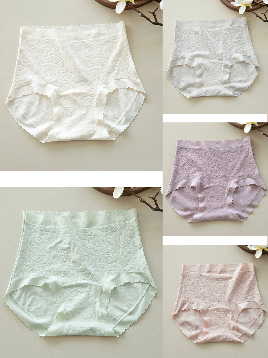 5 Pieces Women Artsy Floral High Waist Underwear