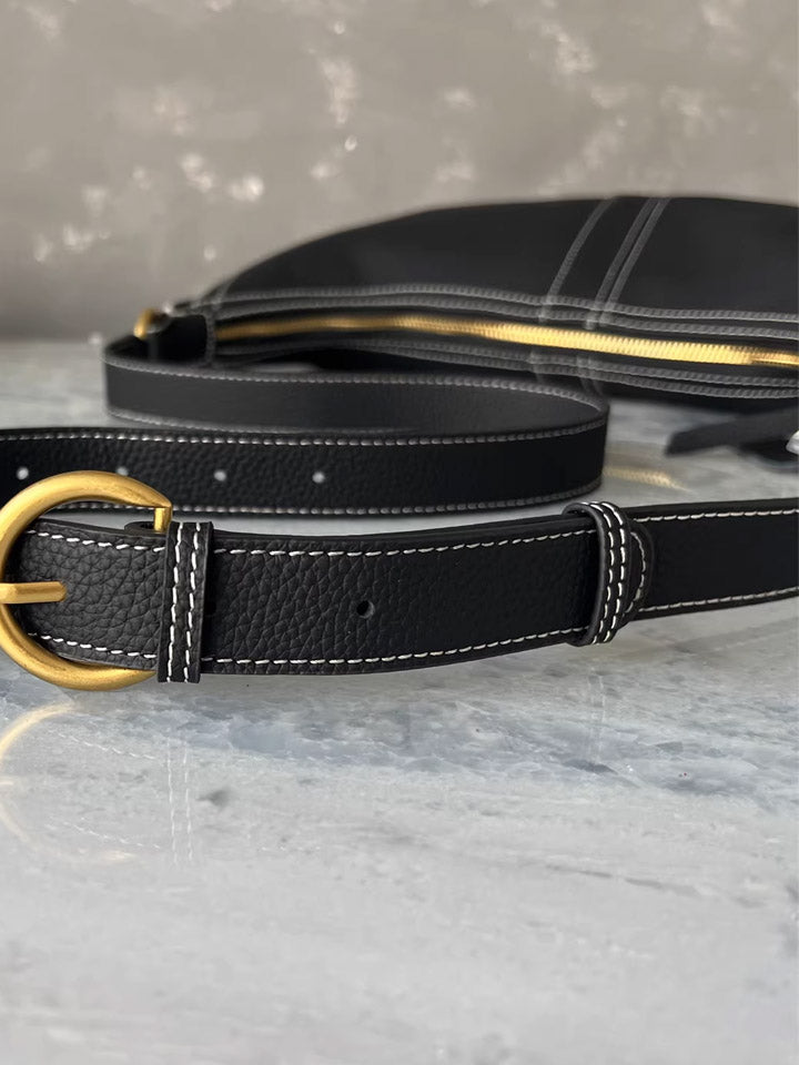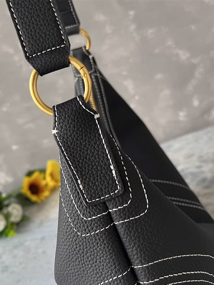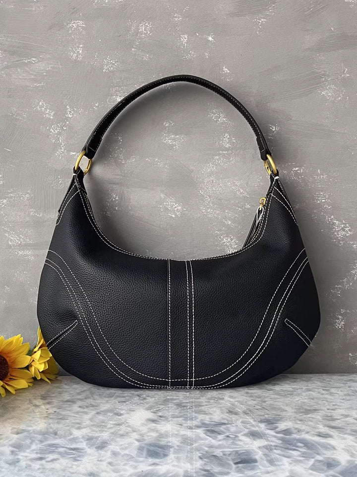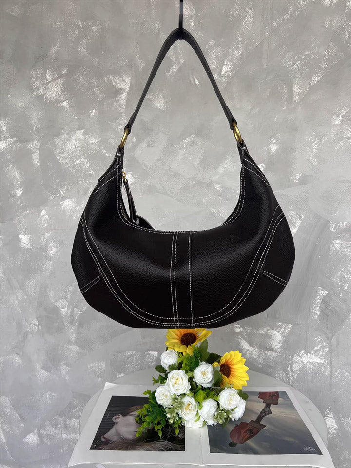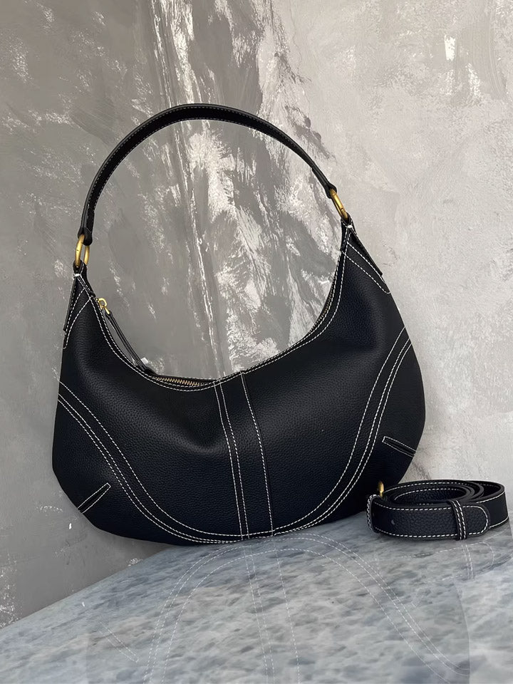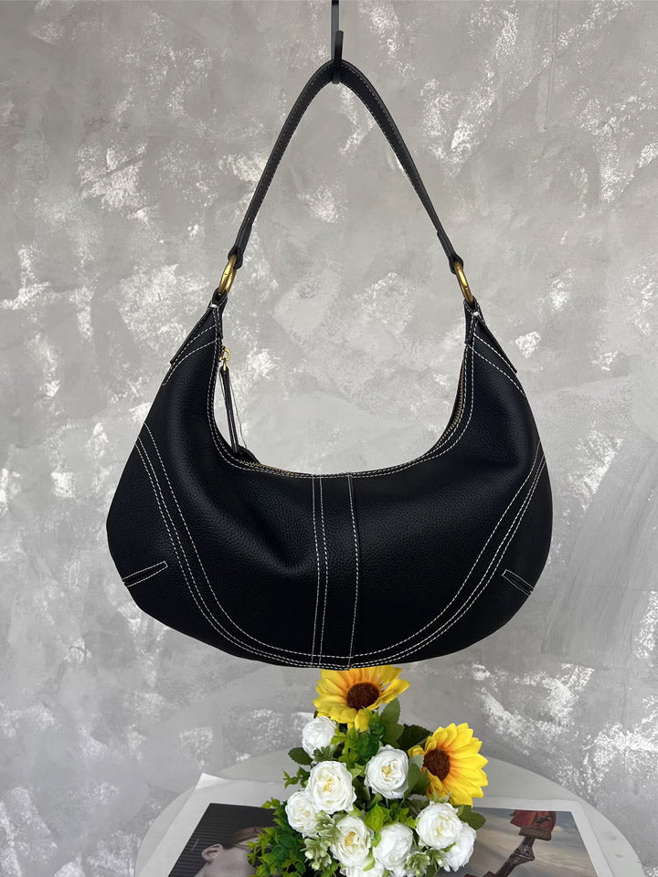 Black Leather Crescent Shoulder Bag