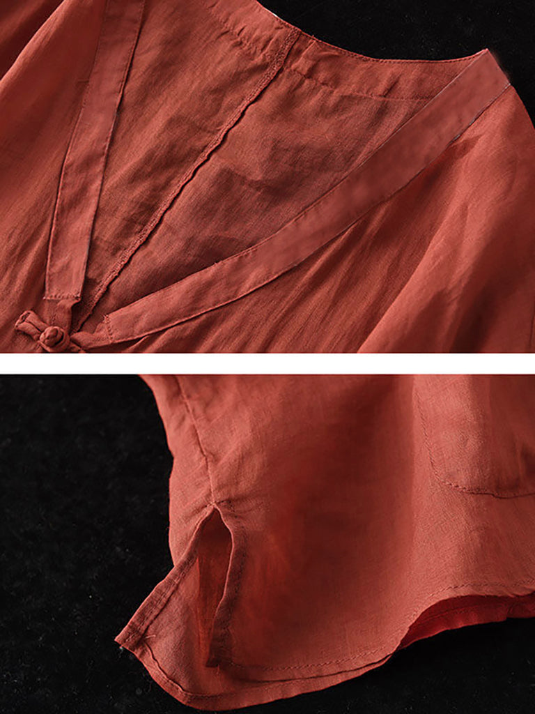 Plus Size - Ramie Pocket Vintage Sunscreen Cardigans Top