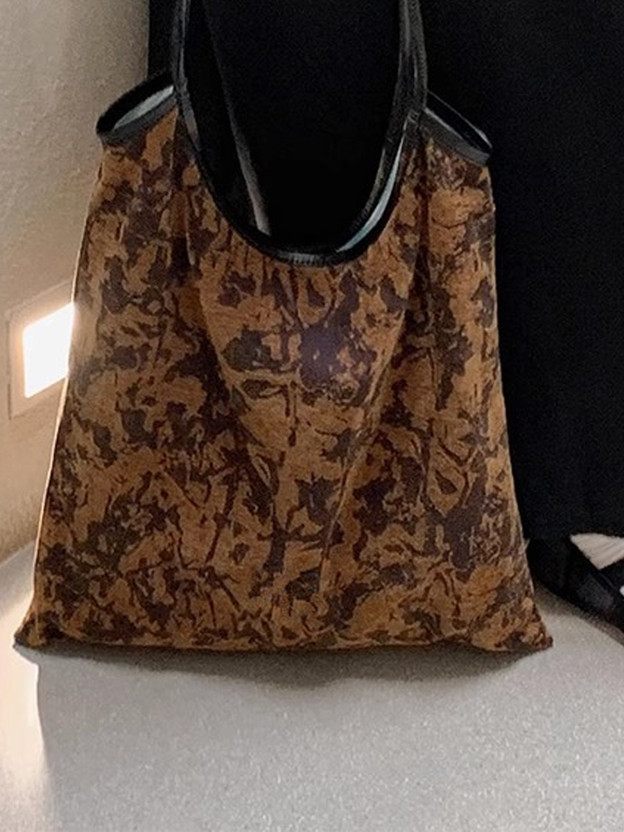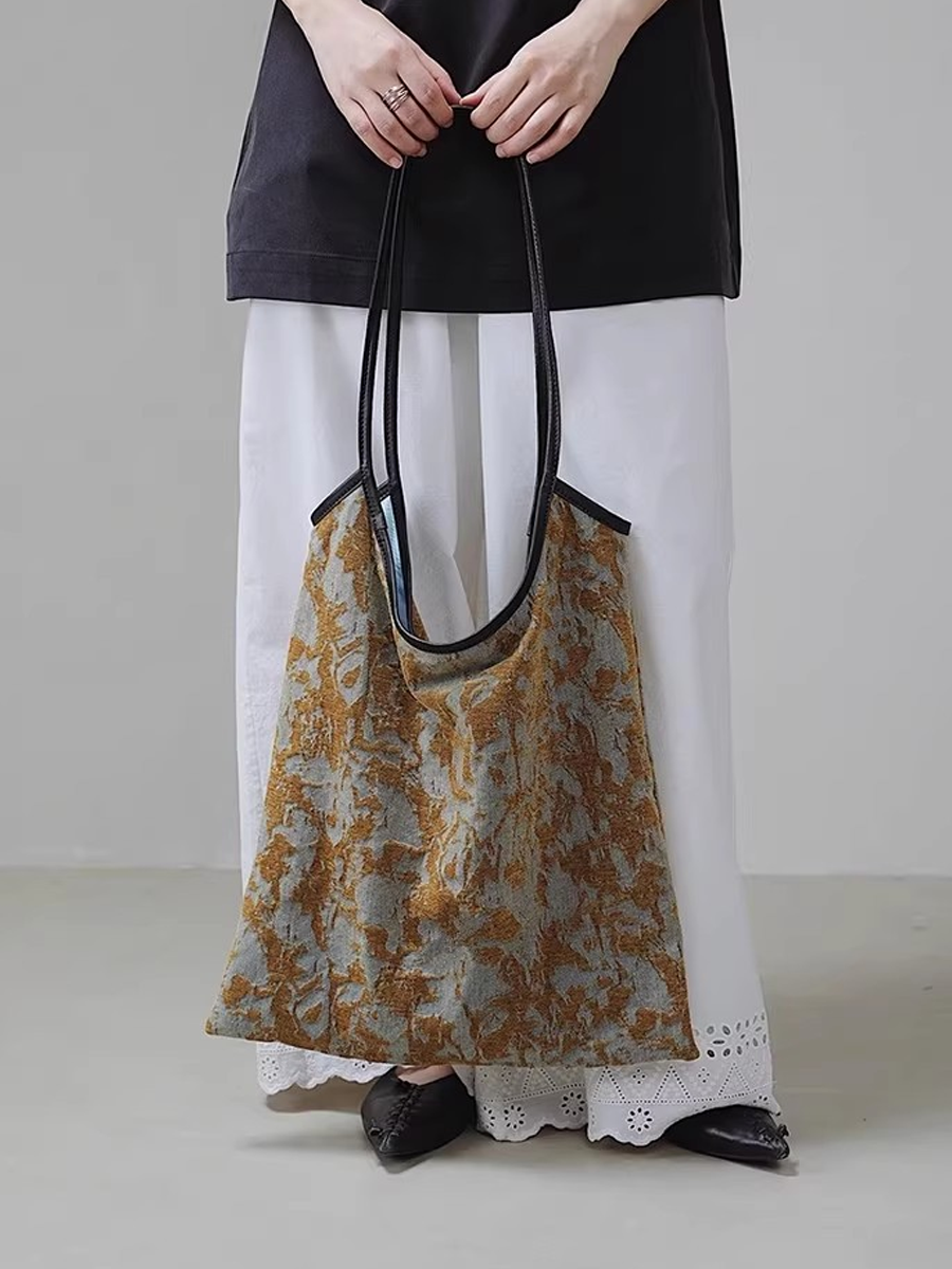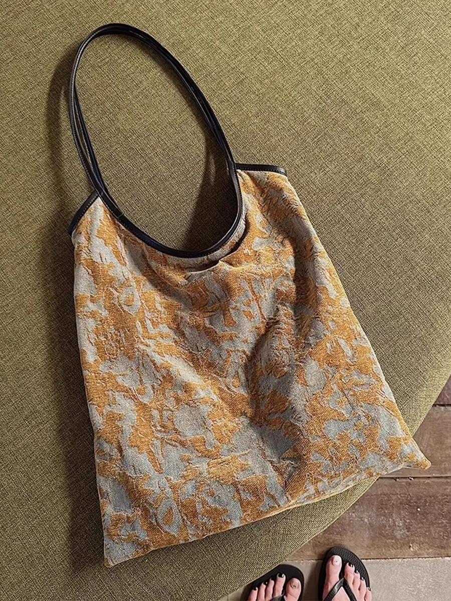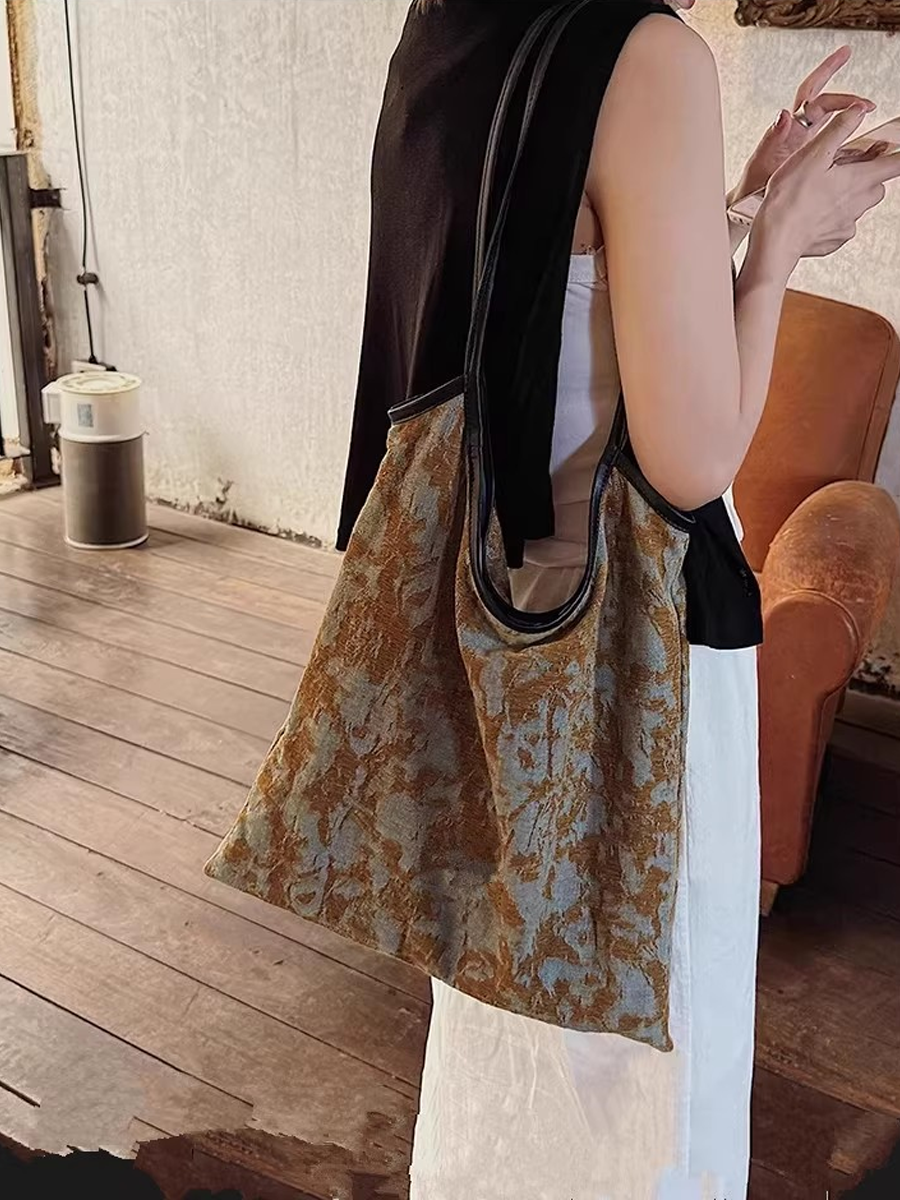 Retro Artistic Oil Painting Embossed Canvas Shoulder Bag