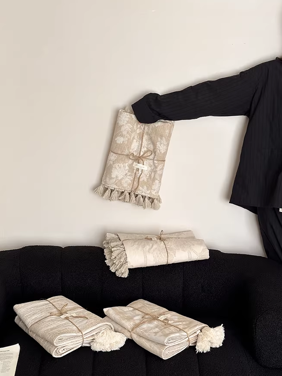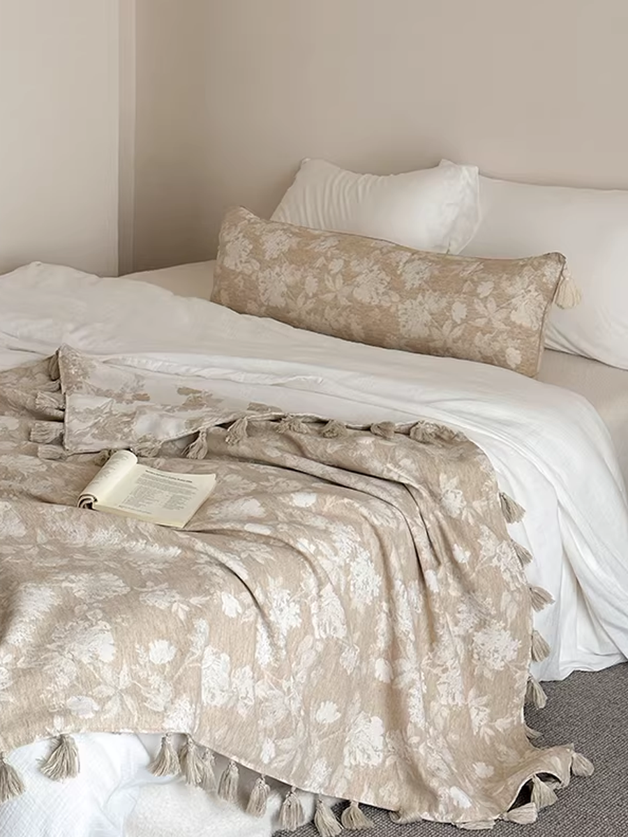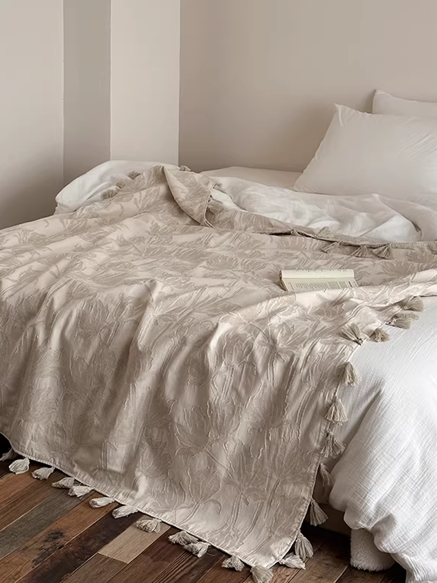 Retro Textured Cotton-Linen Tassel Floral Jacquard Blanket