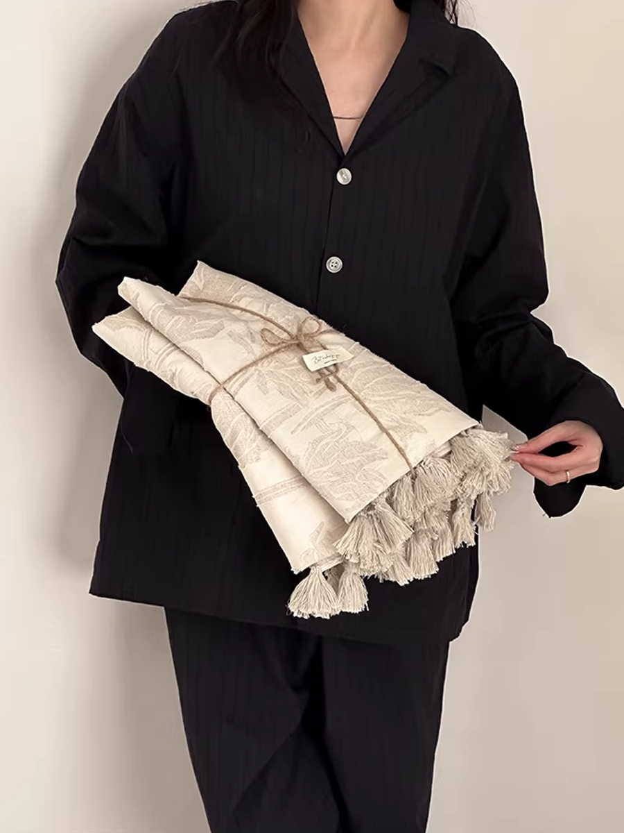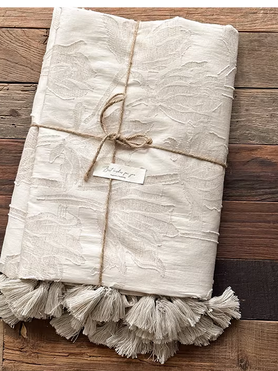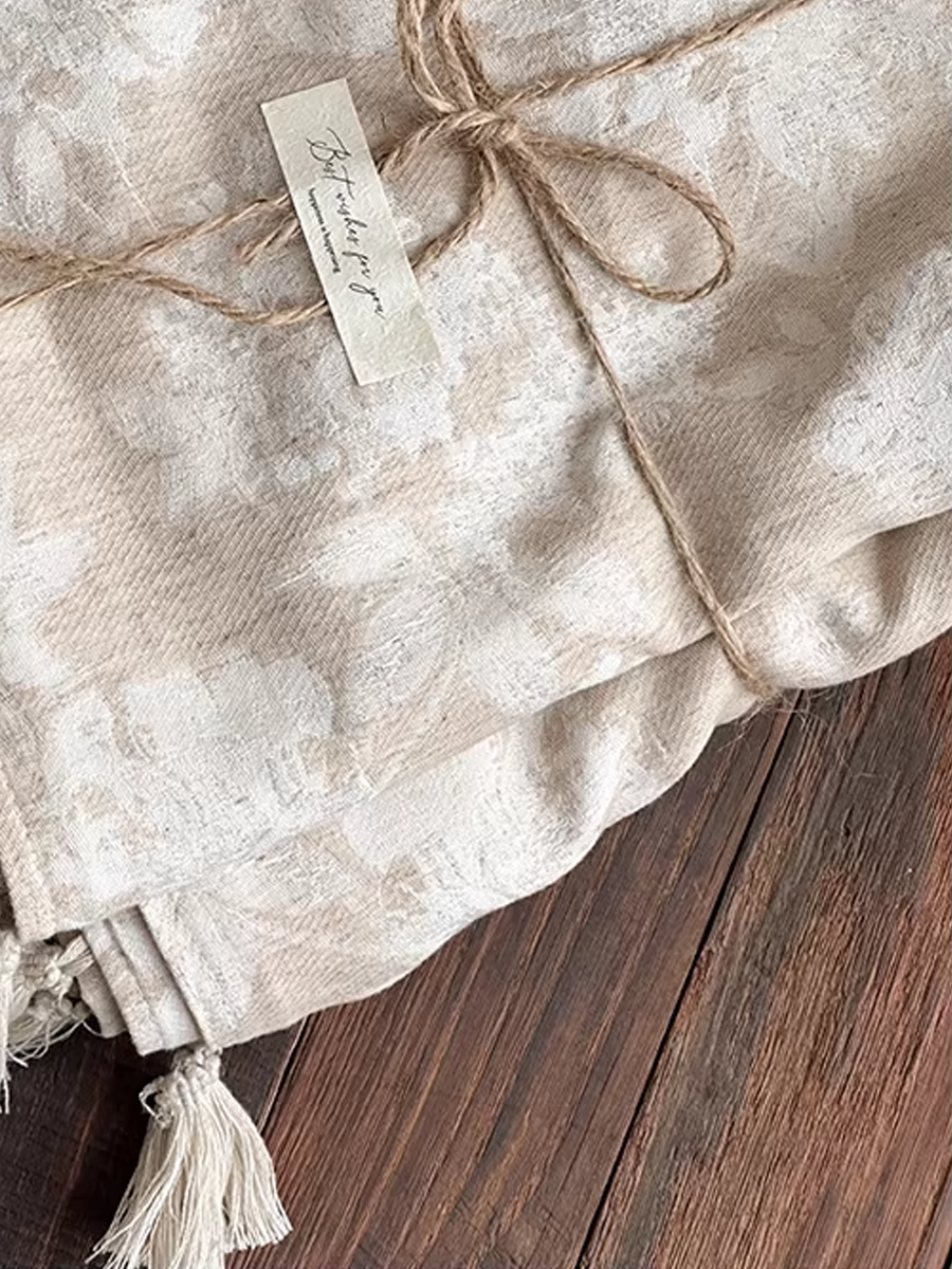 Retro Textured Cotton-Linen Tassel Floral Jacquard Blanket