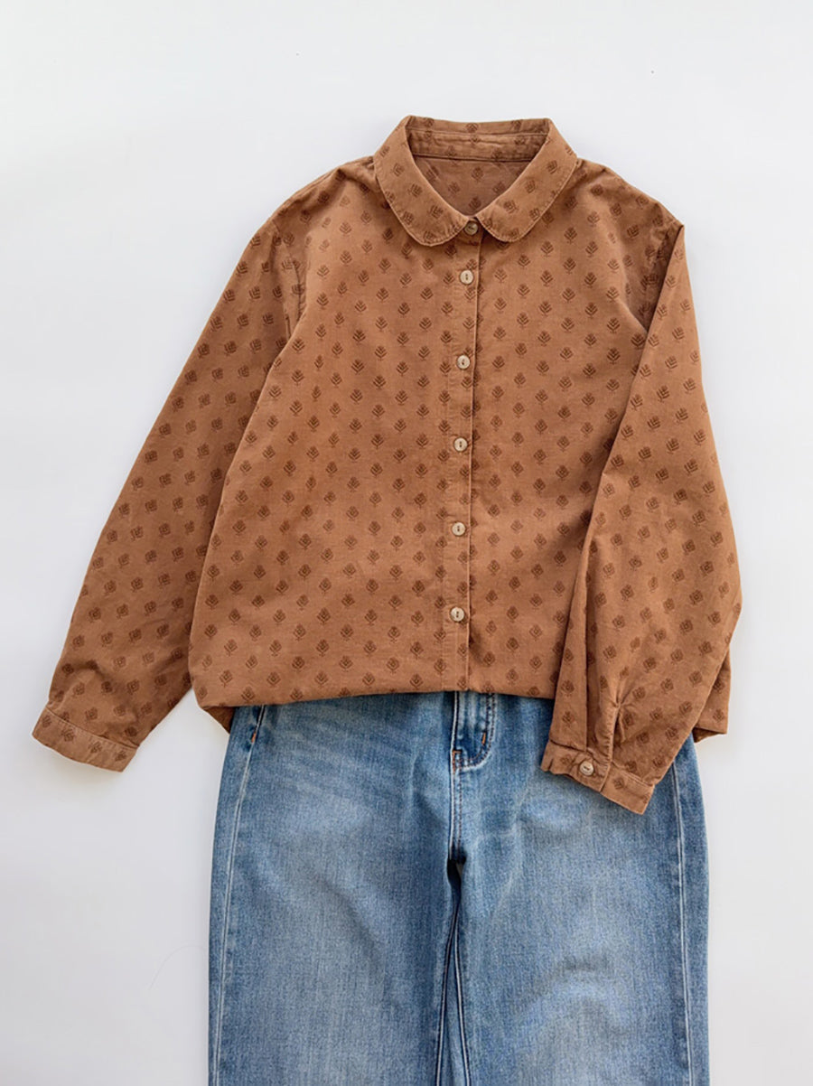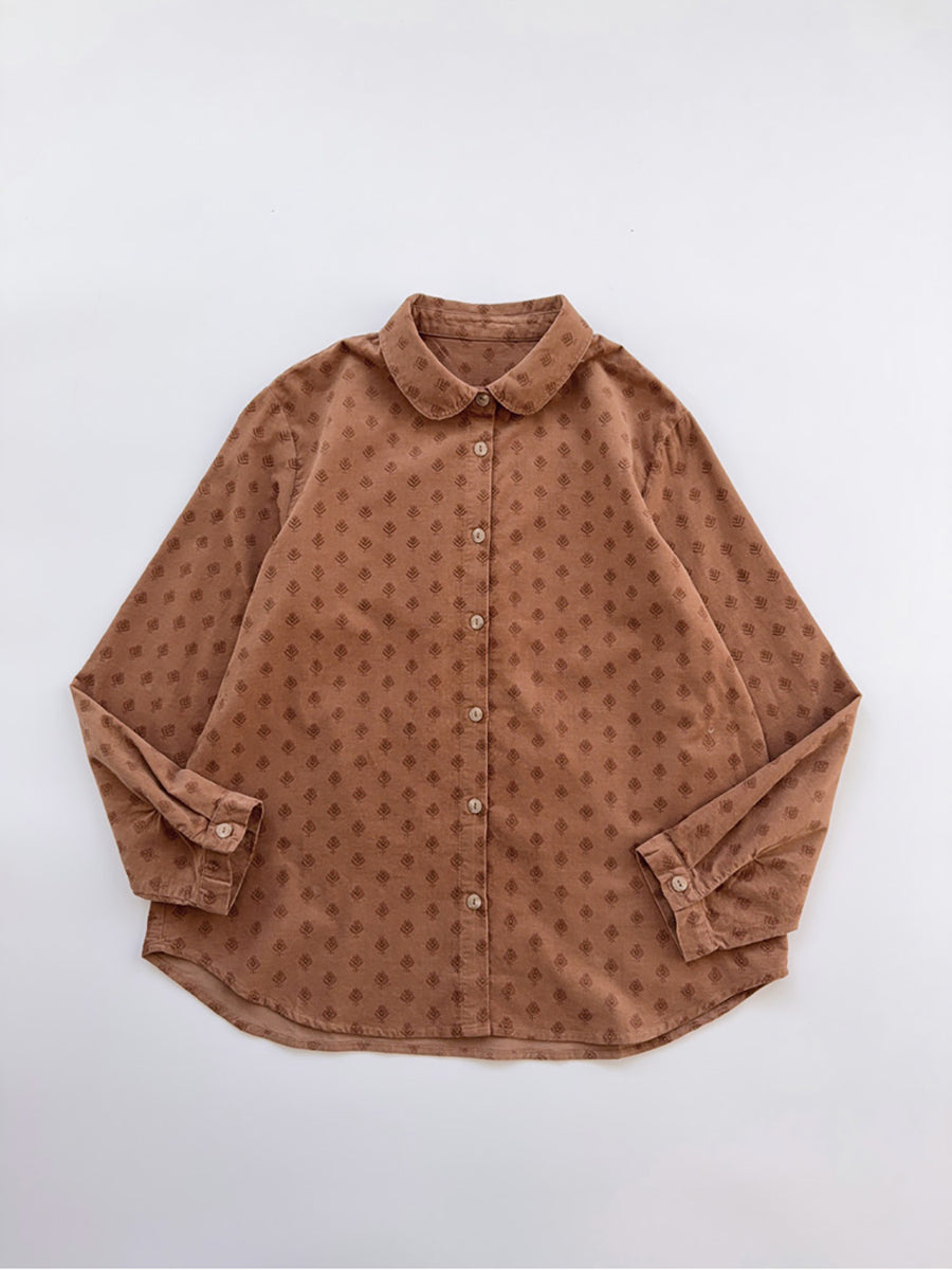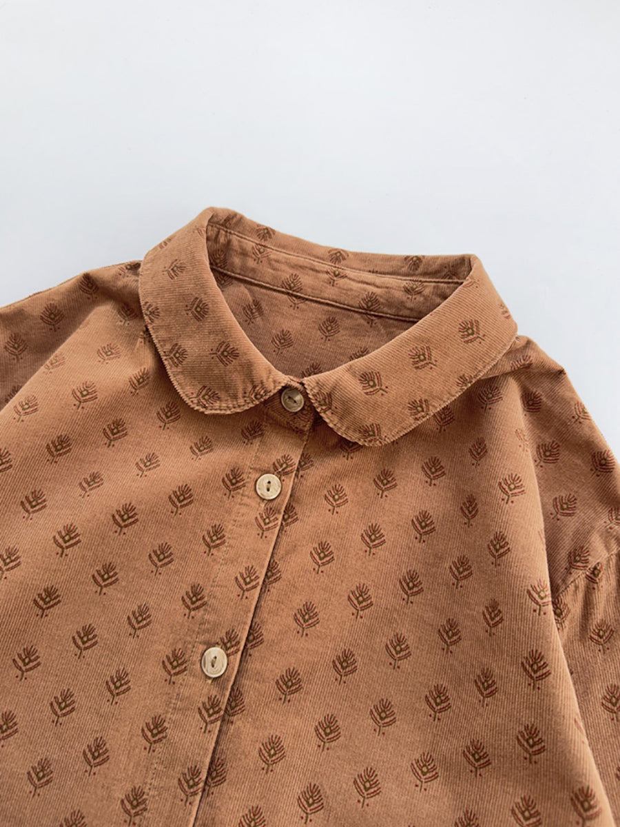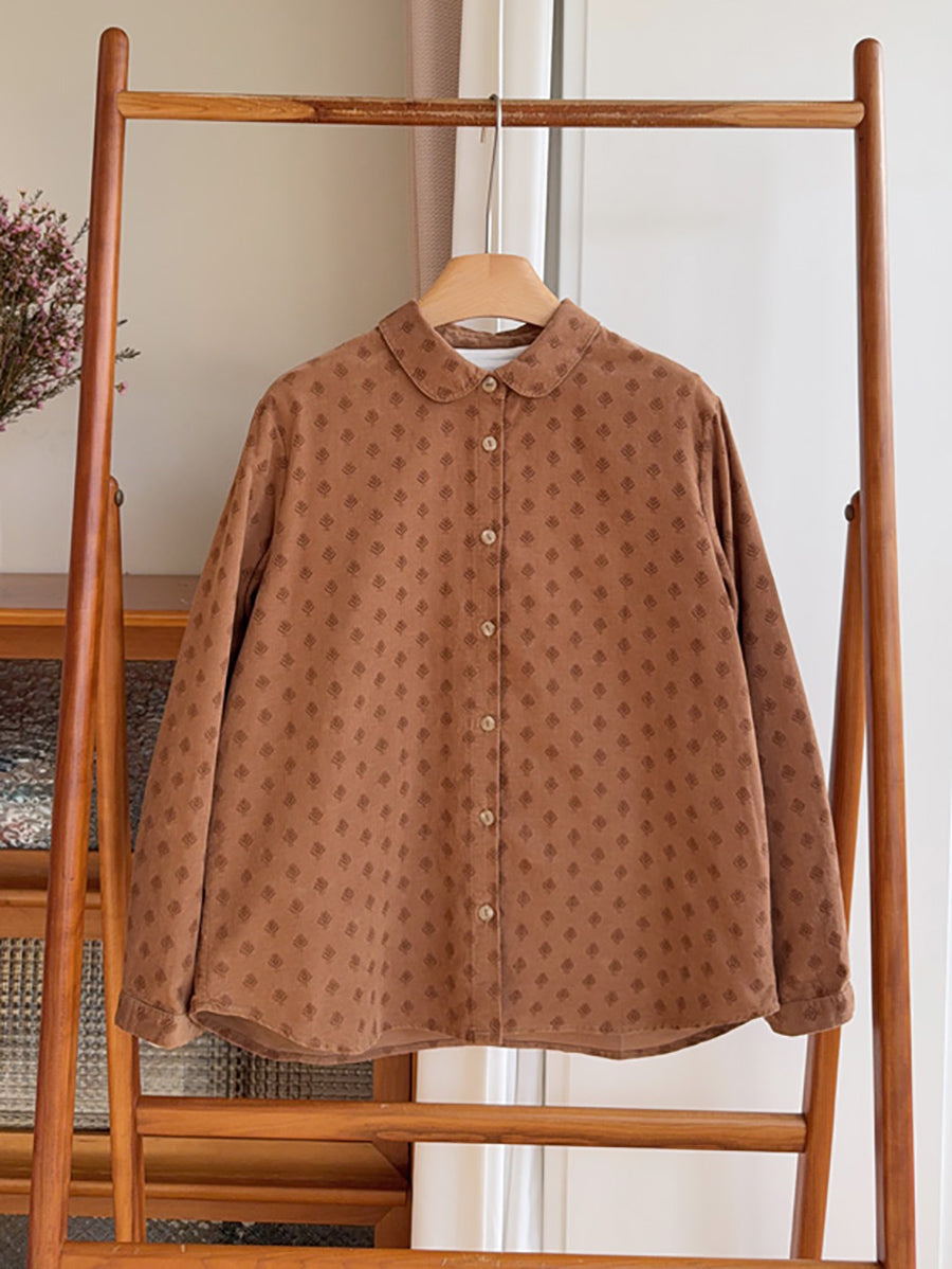 Women Artsy Autumn Flower Turn-down Collar Corduroy Shirt