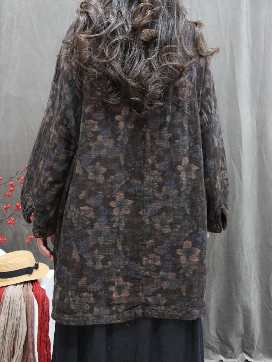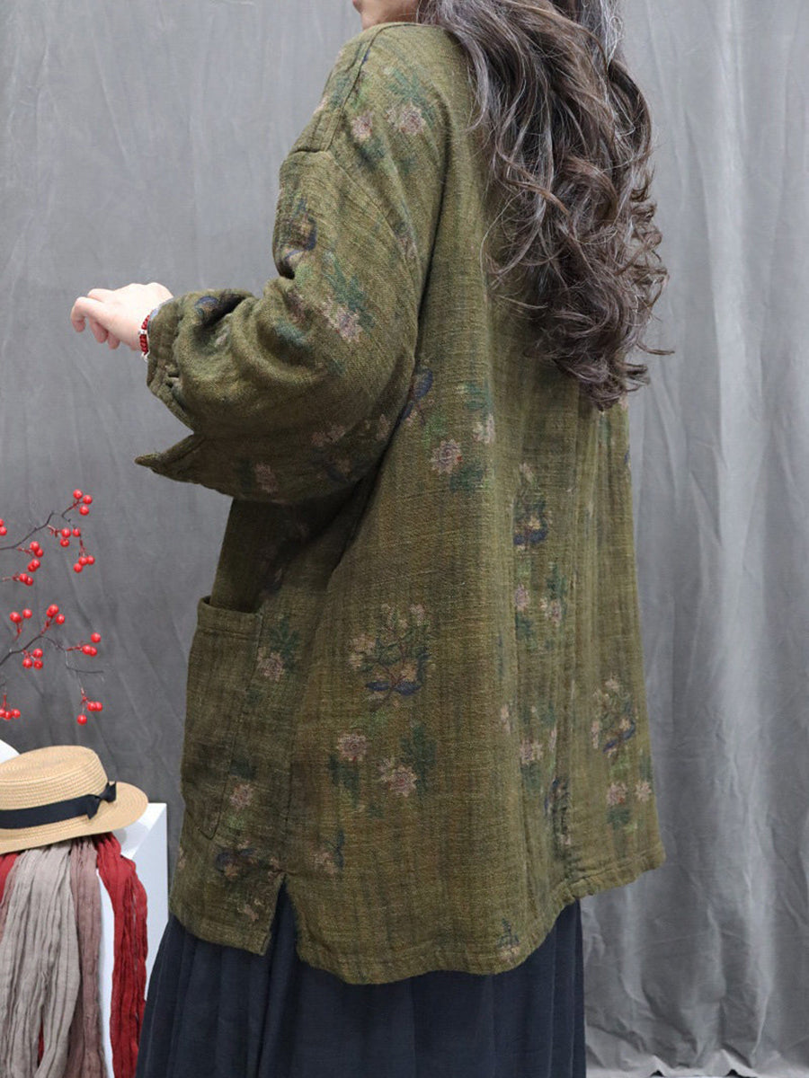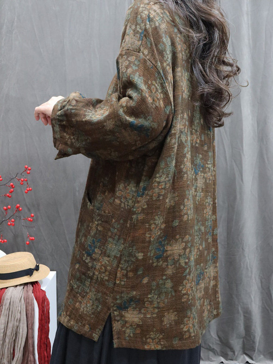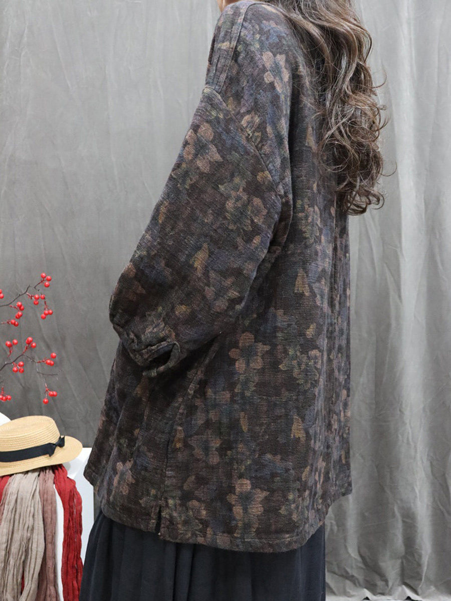 Women Artsy Autumn Flower O-Neck 100%Linen Blouse