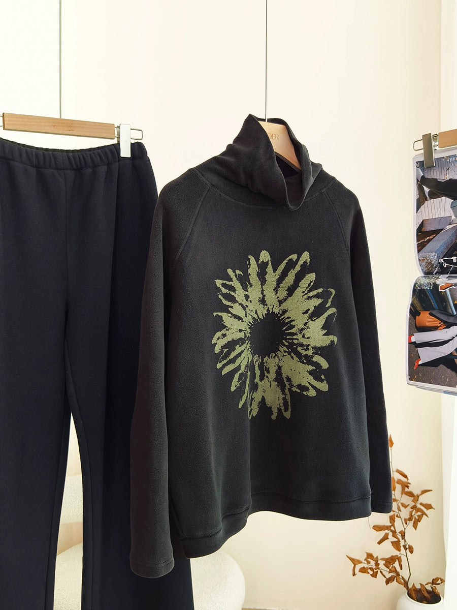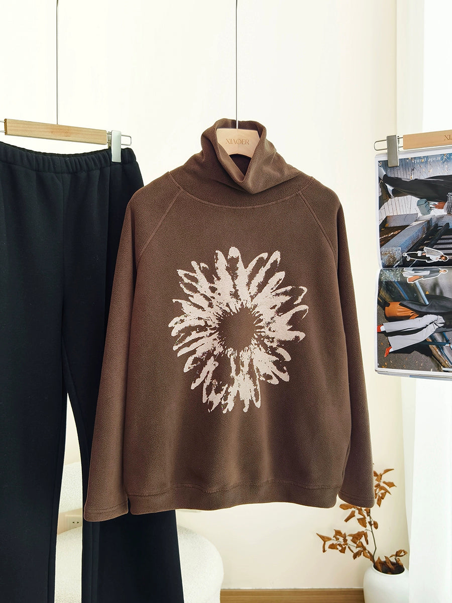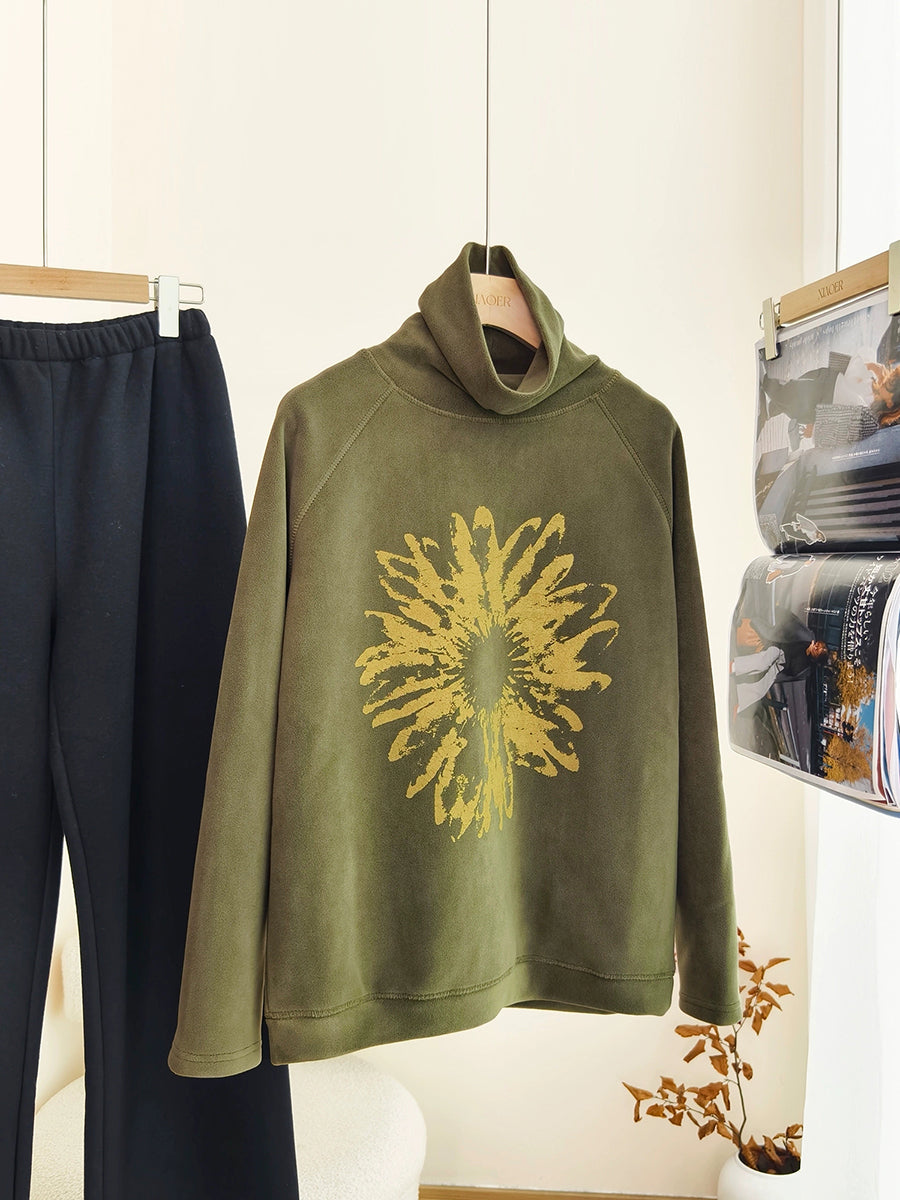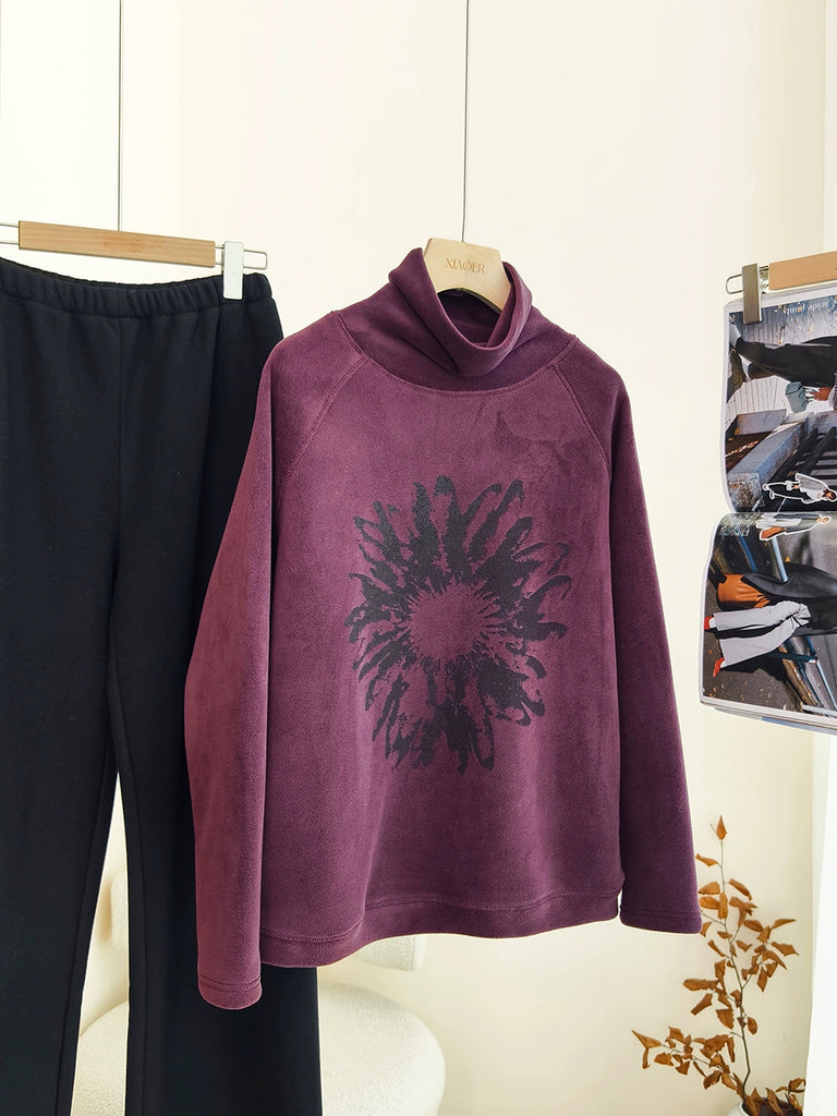 Women Artsy Autumn Flower Turtleneck Blouse