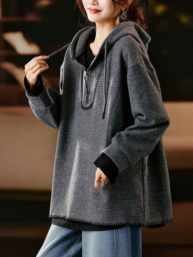 Women Artsy Autumn Pure Color Fleece-lined Hoodie