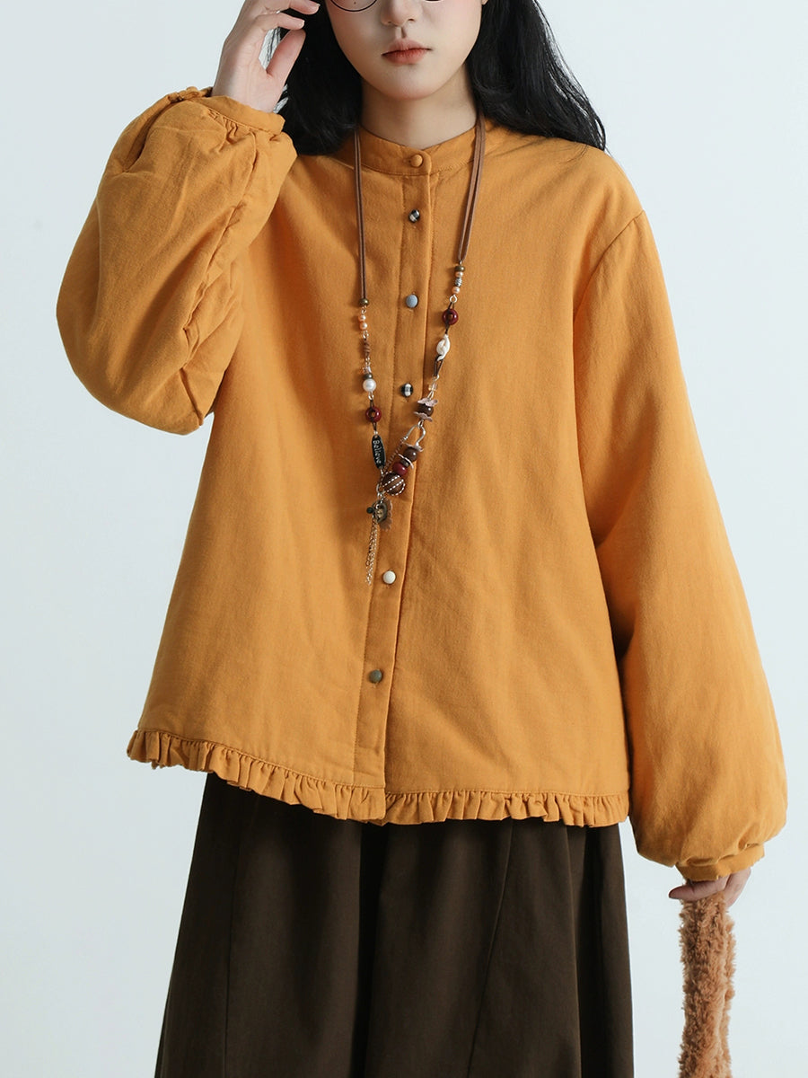 Women Artsy Pure Color Cotton Stand Collar Blouse