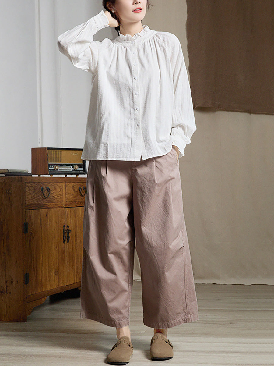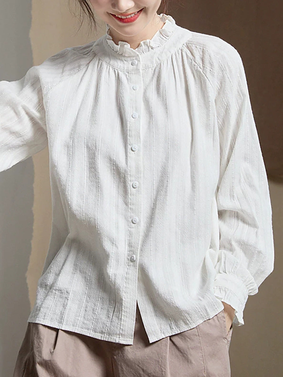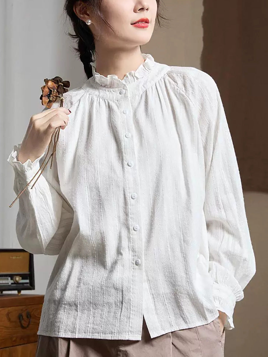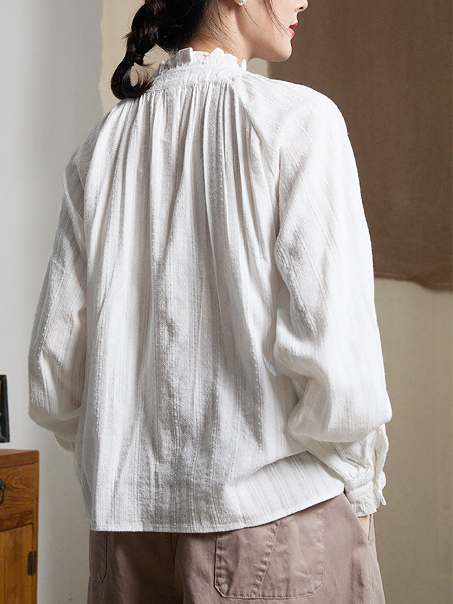 Women Artsy Spring Jacquard Lace Collar Shirt