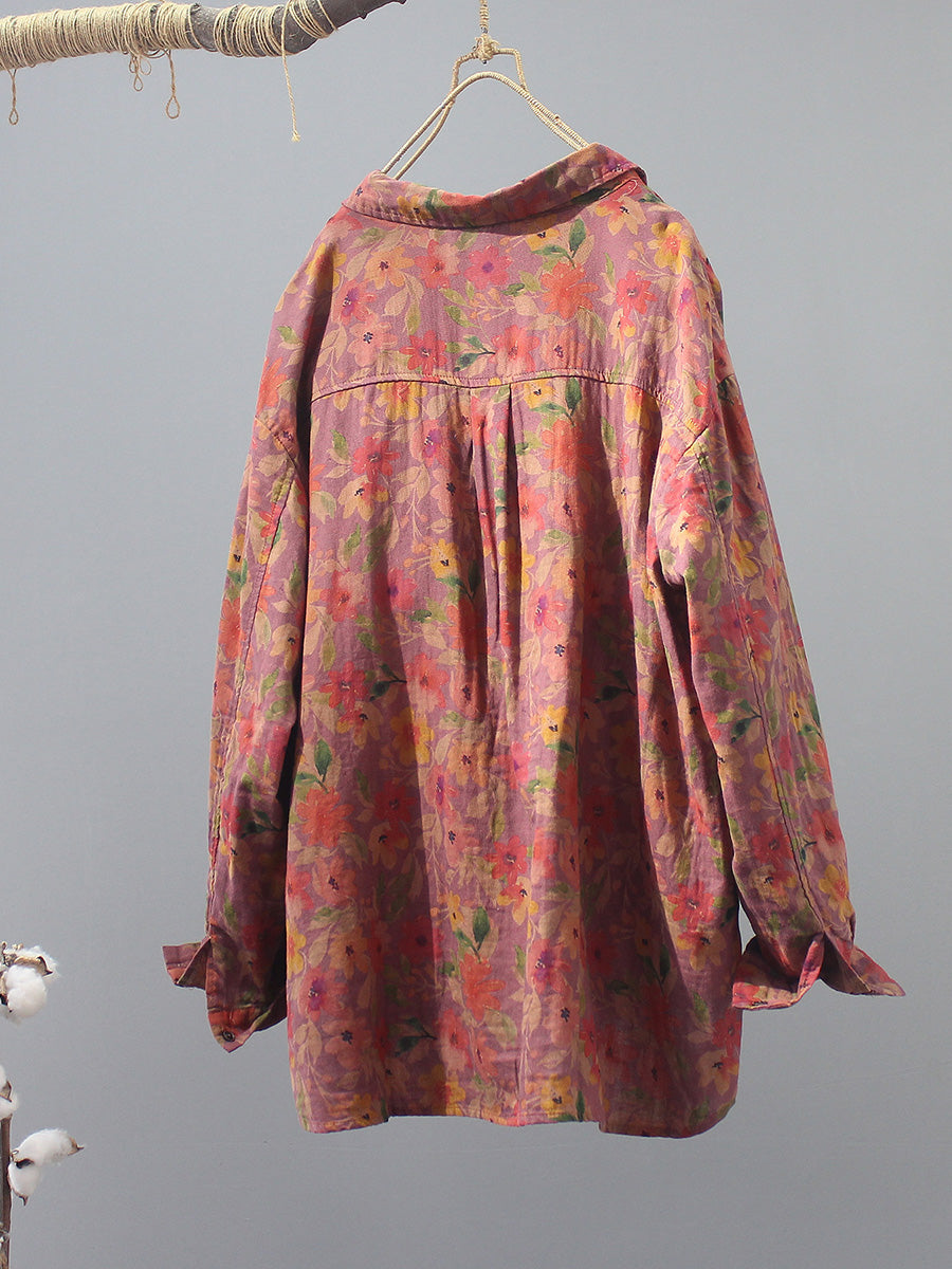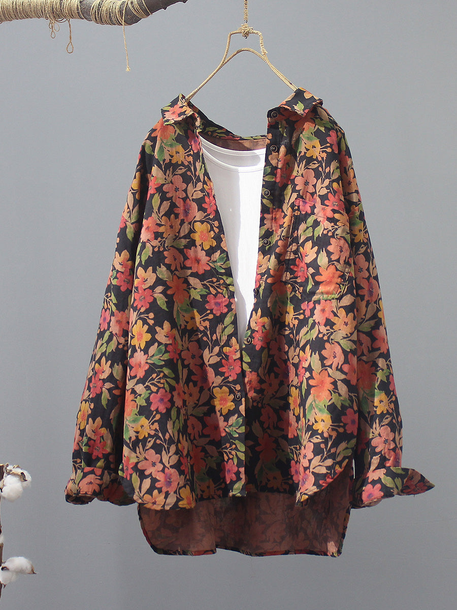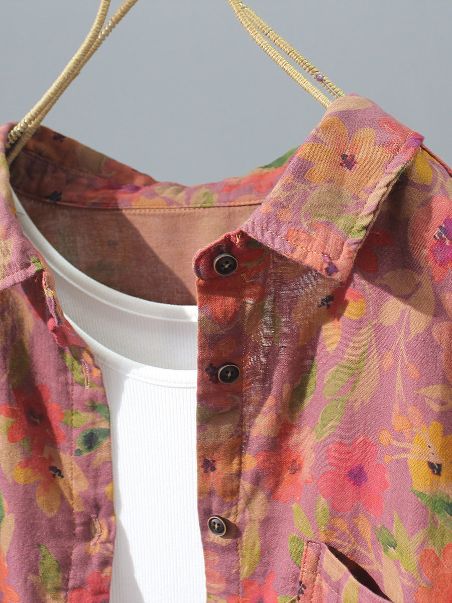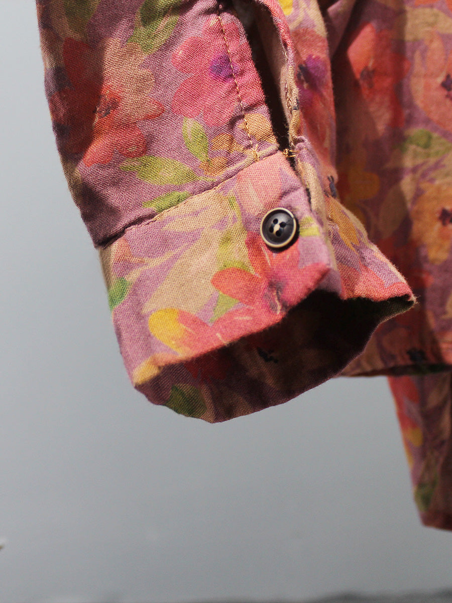 Women Artsy Summer Flower 100%Cotton Blouse