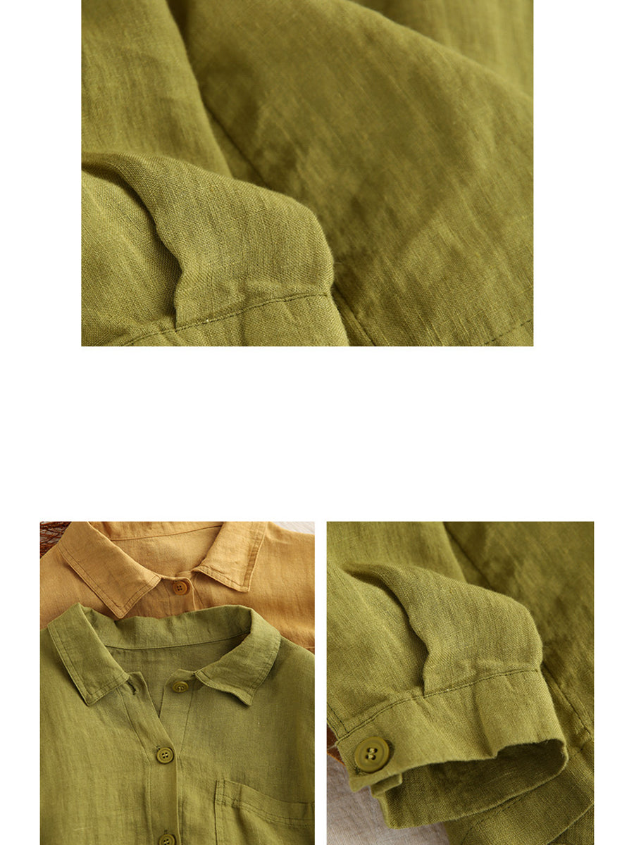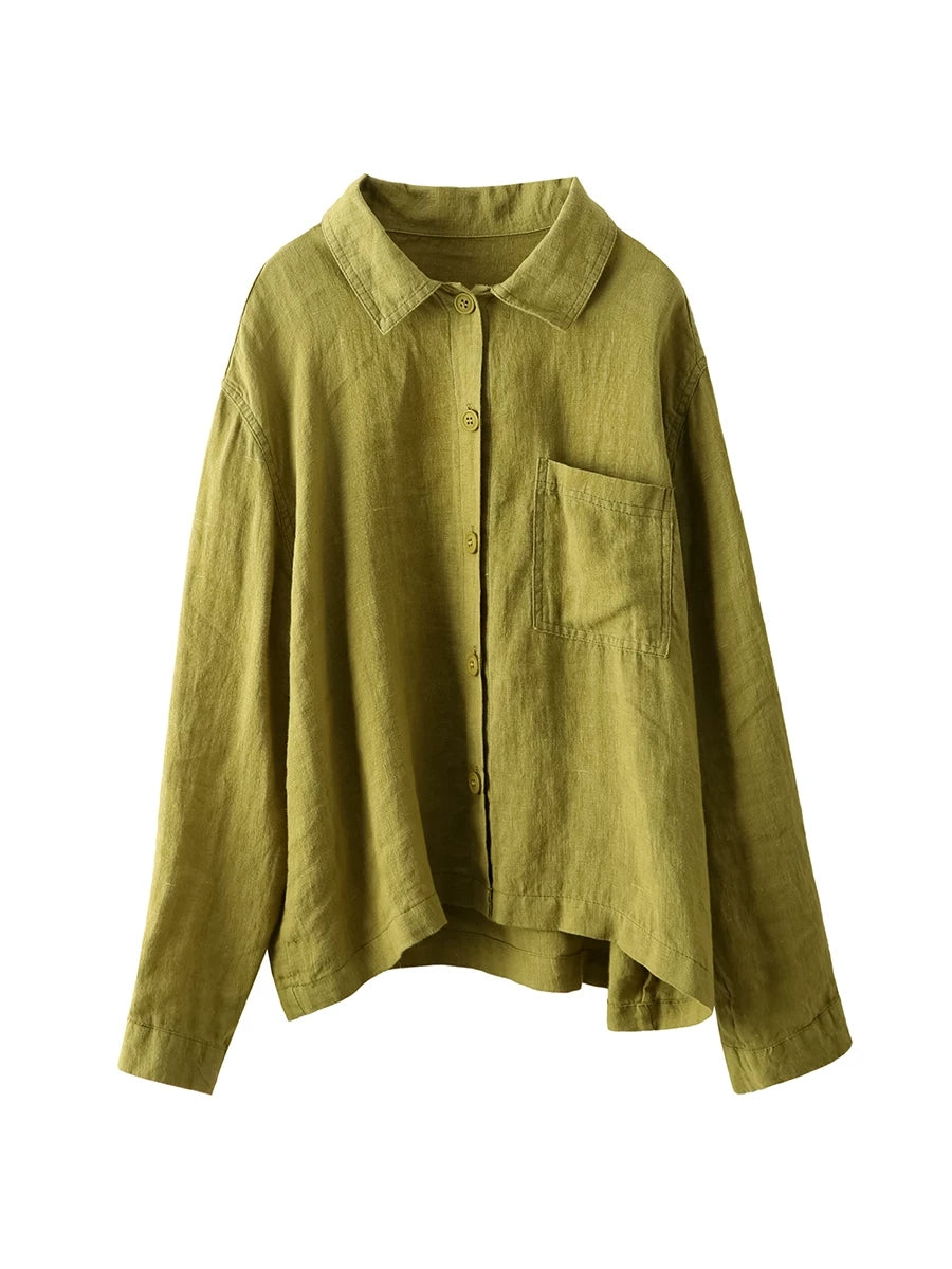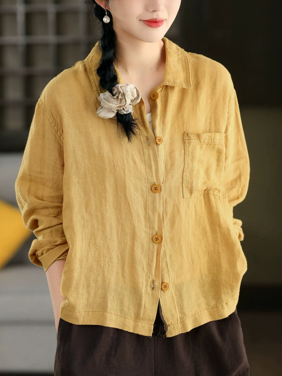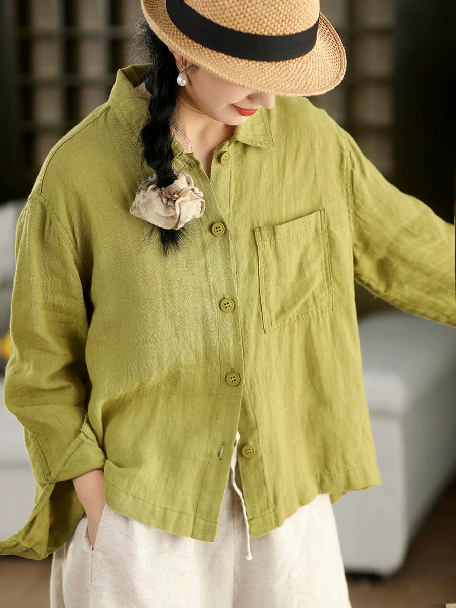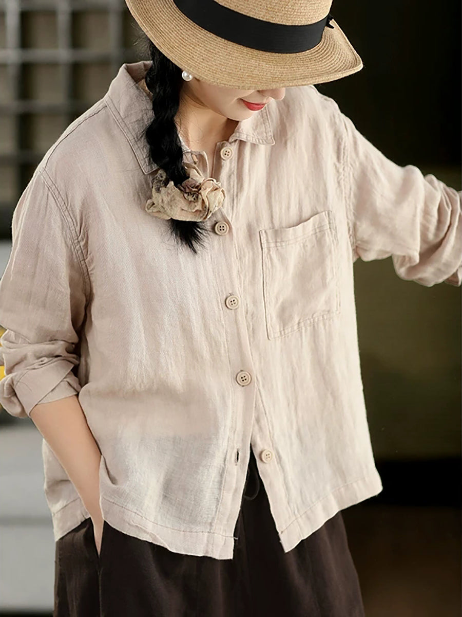 Women Artsy Summer Pure Color 100%Linen Blouse
