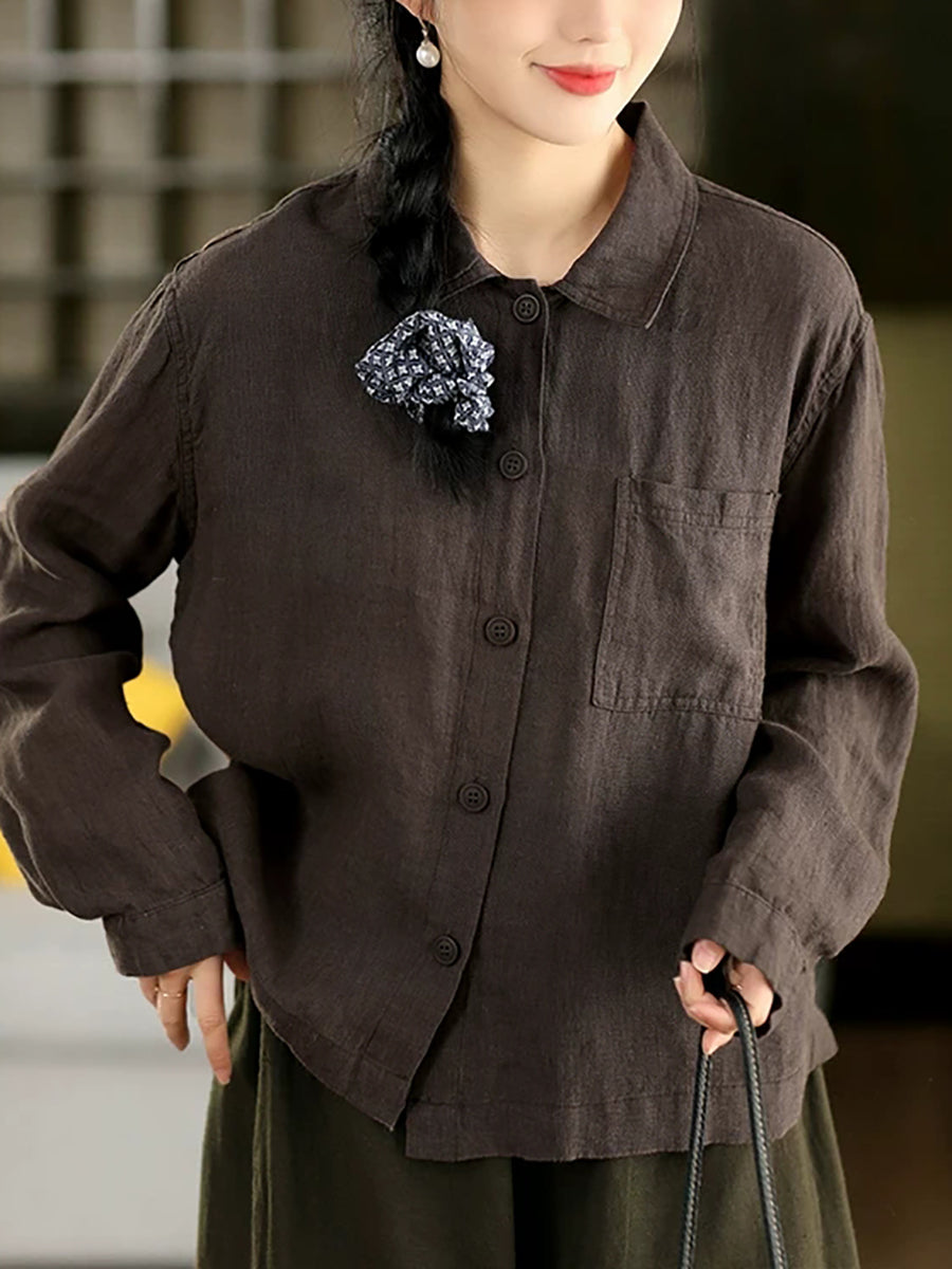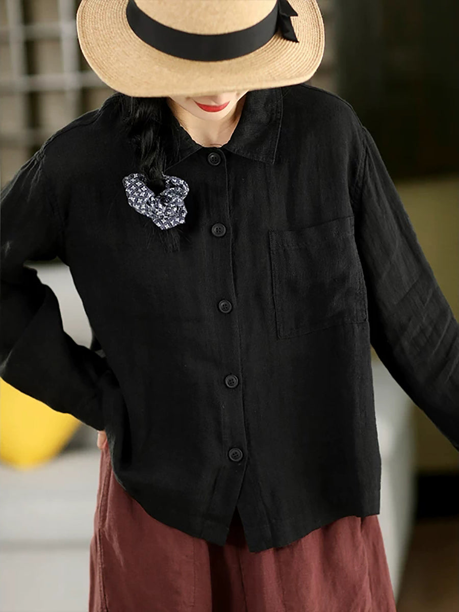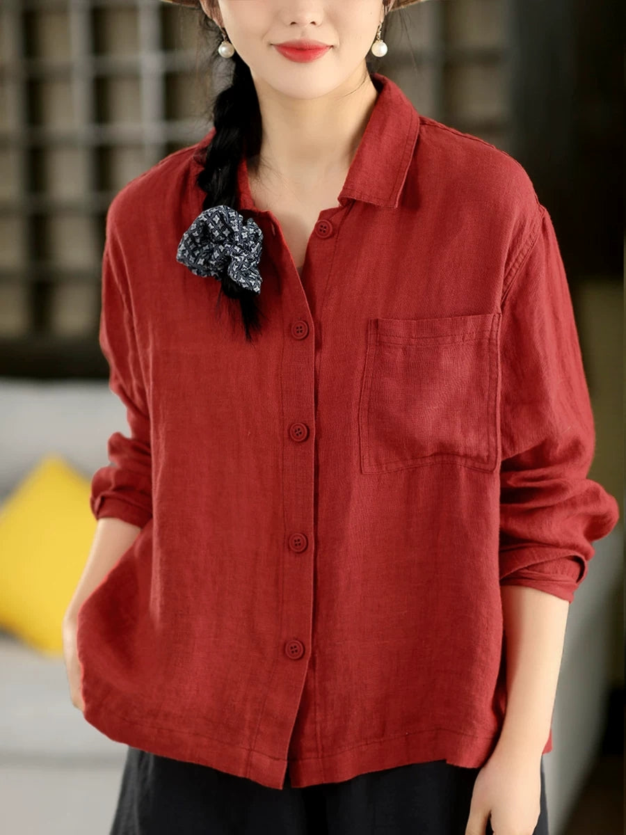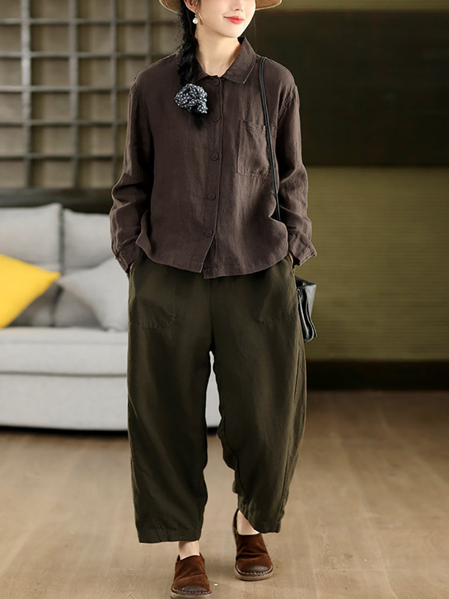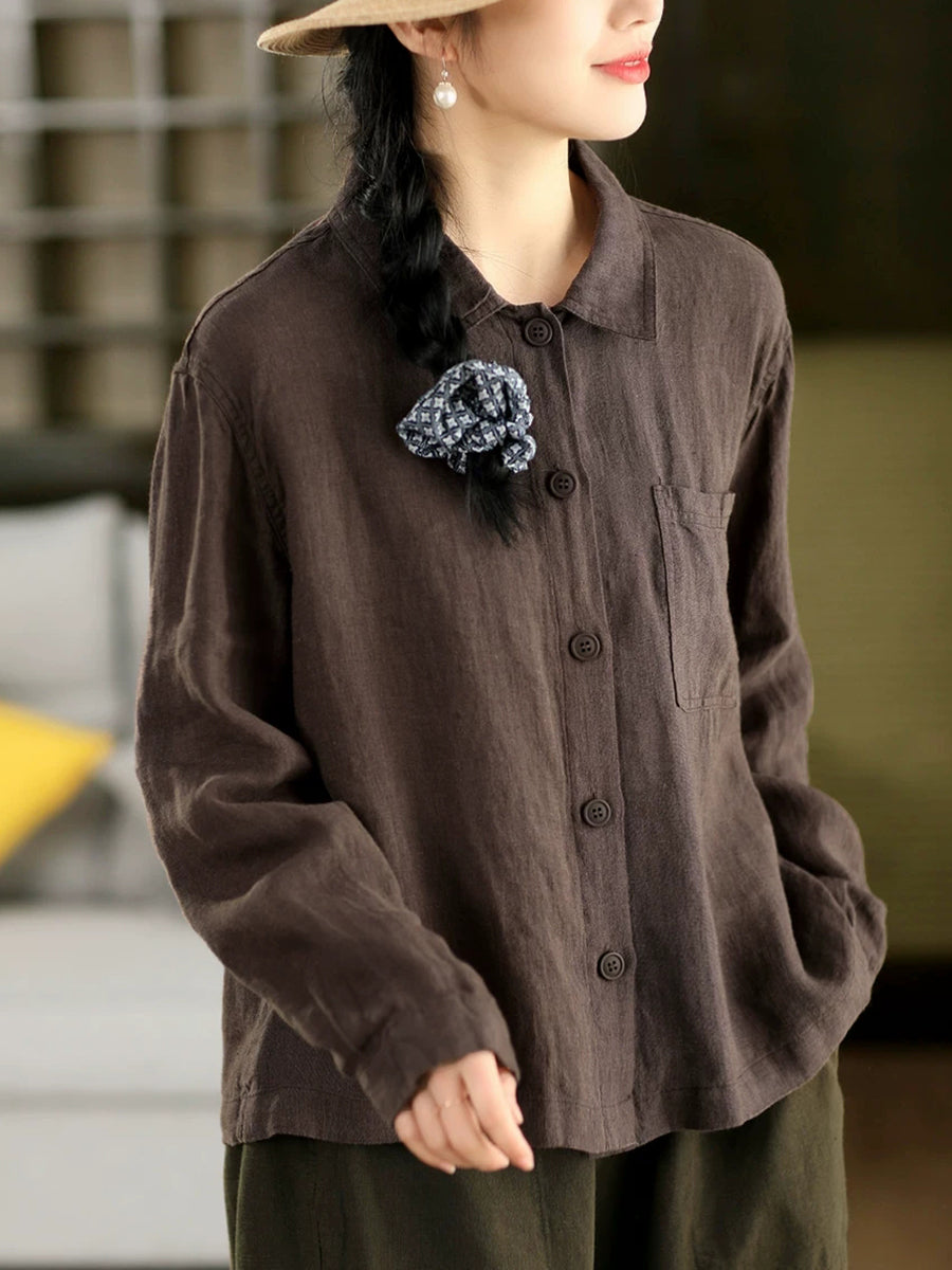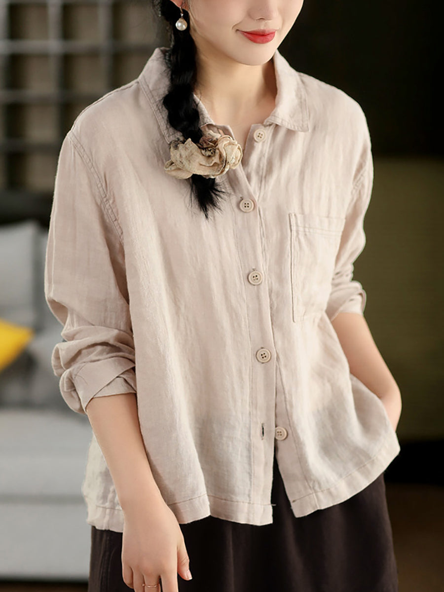 Women Artsy Summer Pure Color 100%Linen Blouse