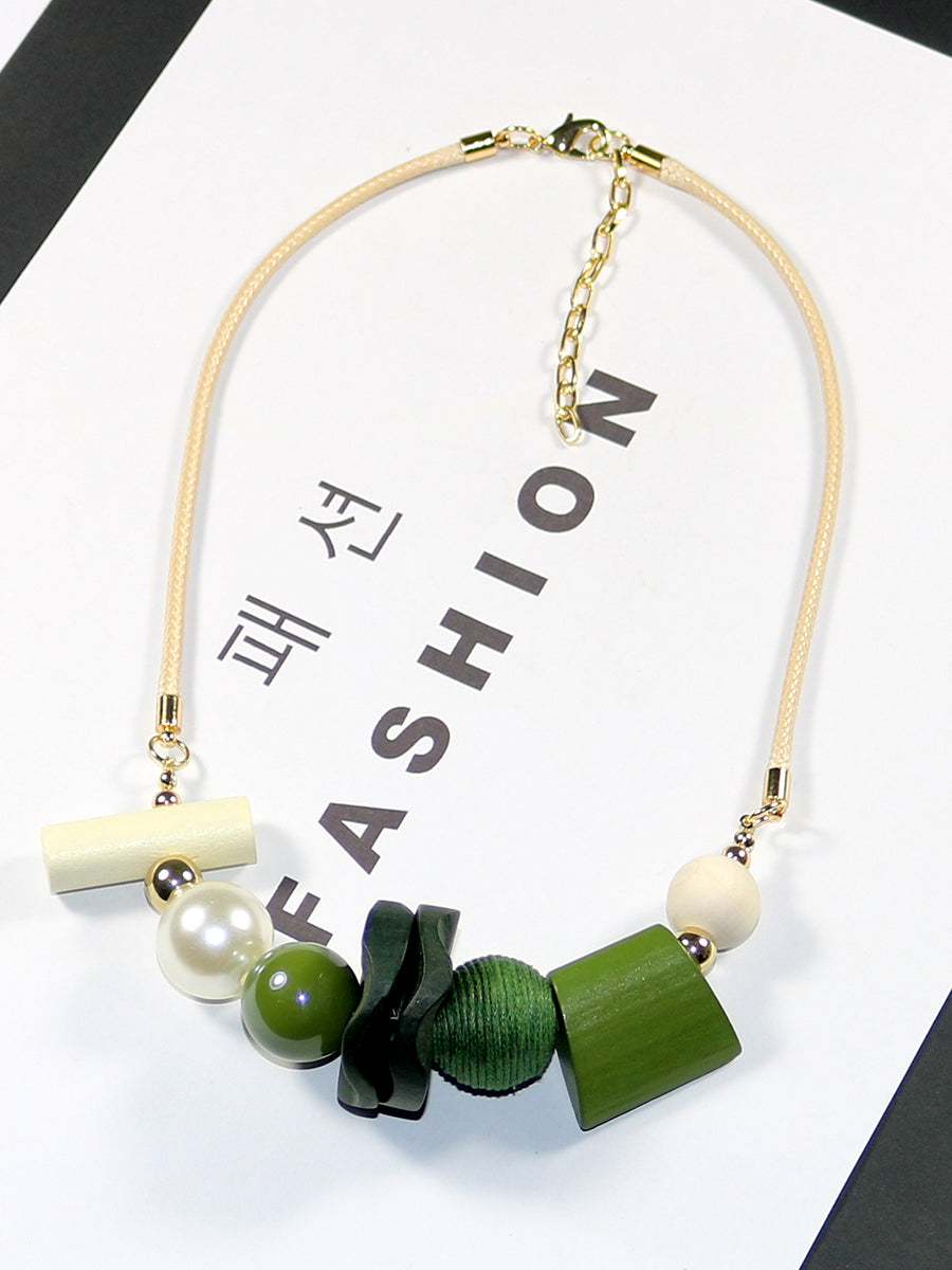 Women Artsy Wooden Geometric Pandent Necklace