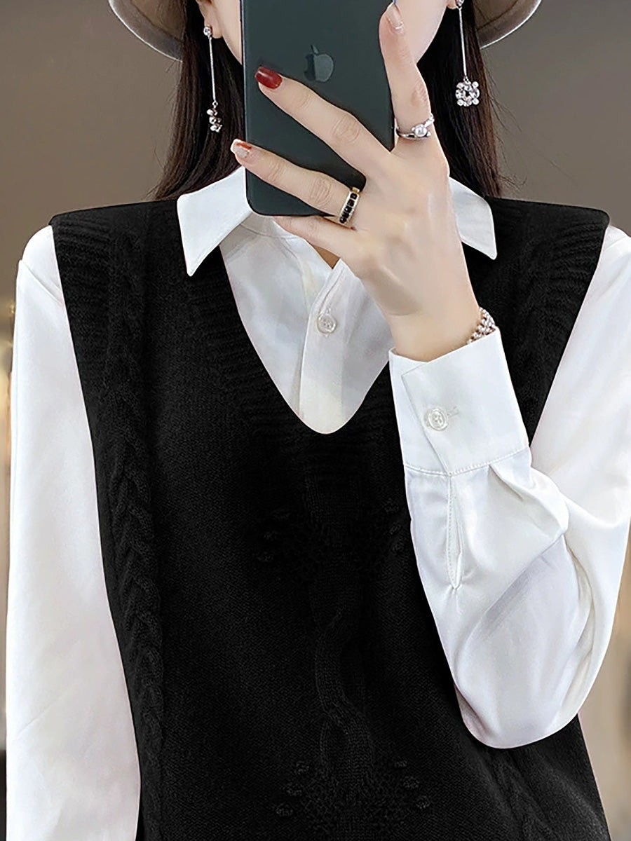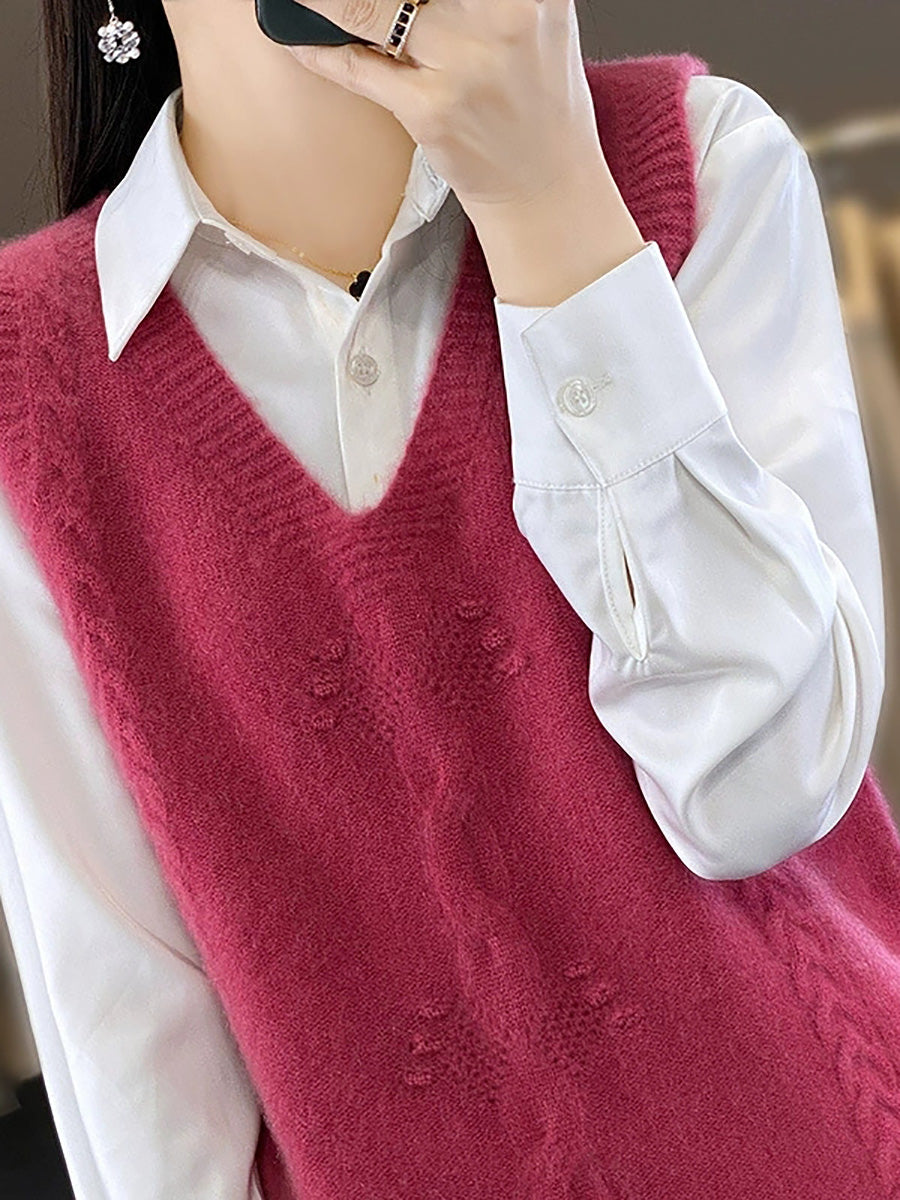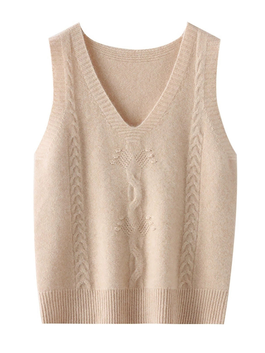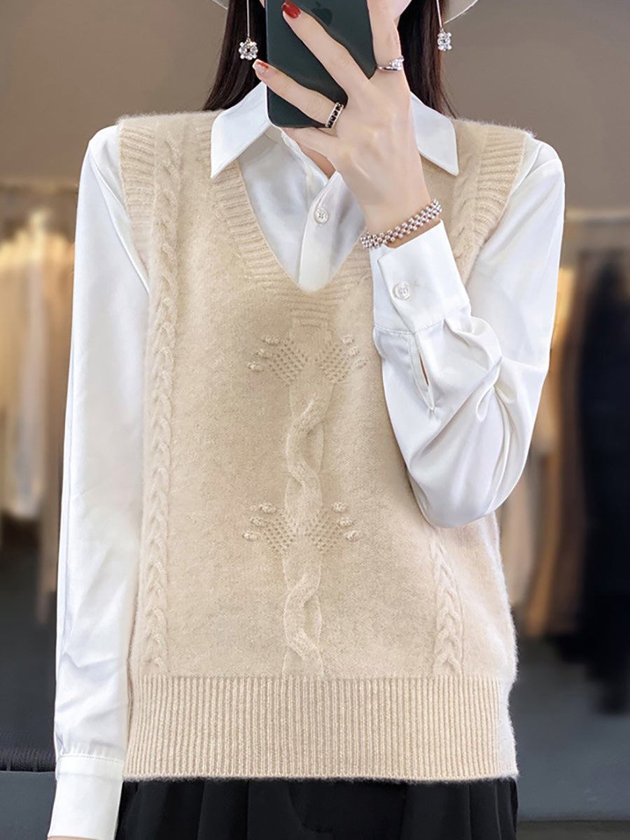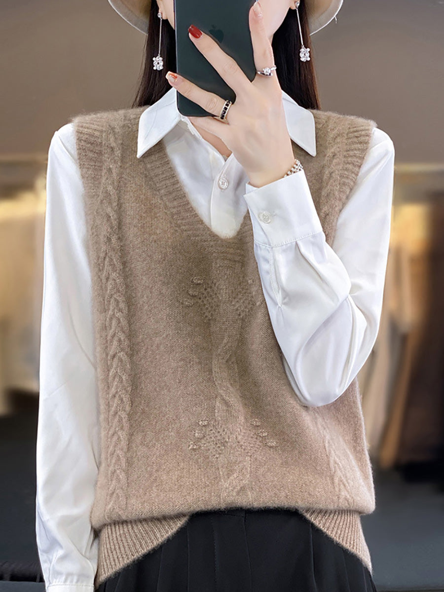 Women Autumn Artsy Jacquard V-Neck Knitted Vest