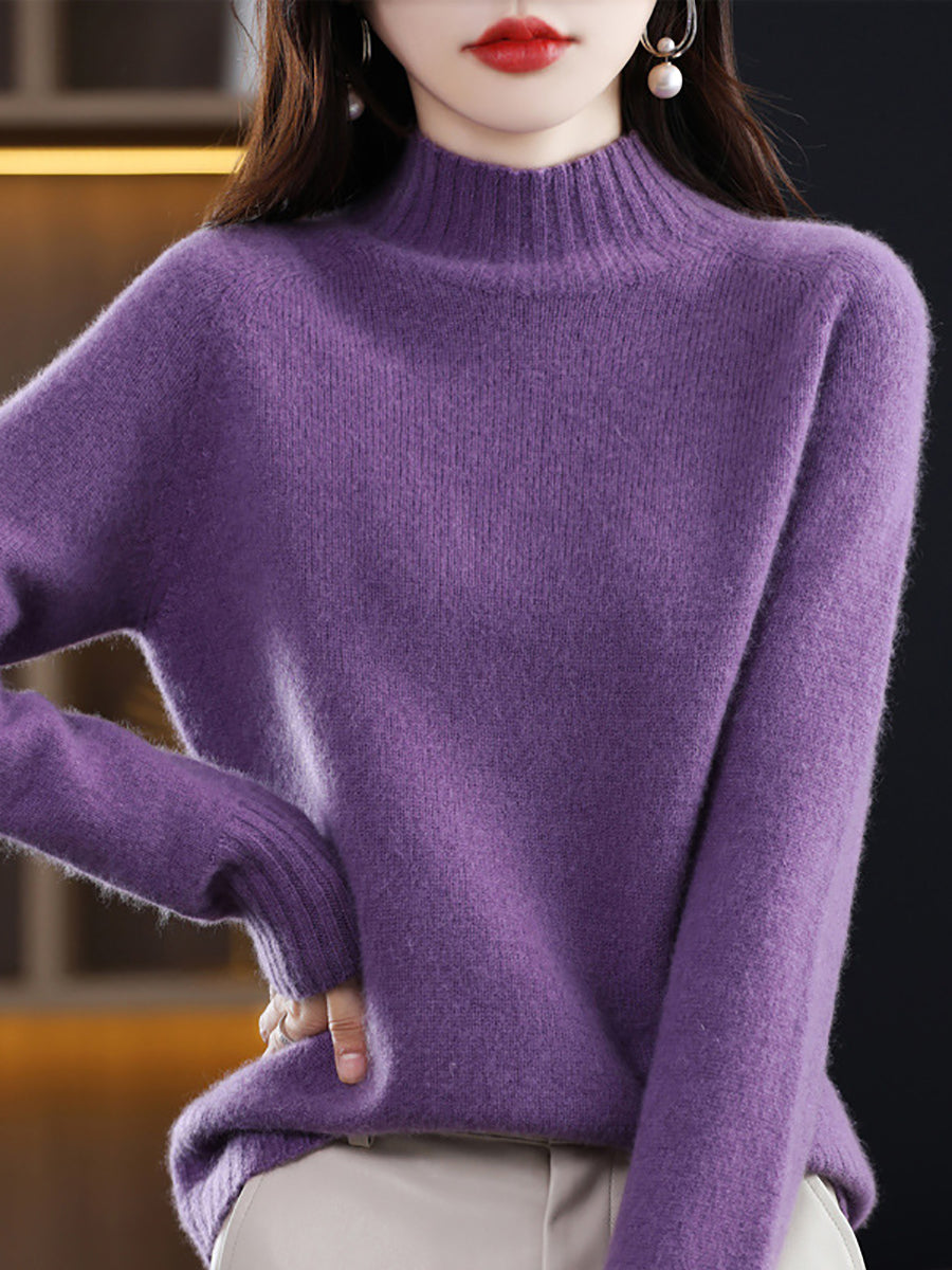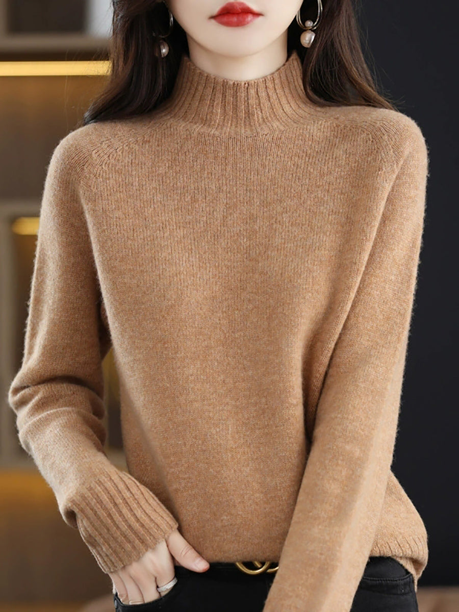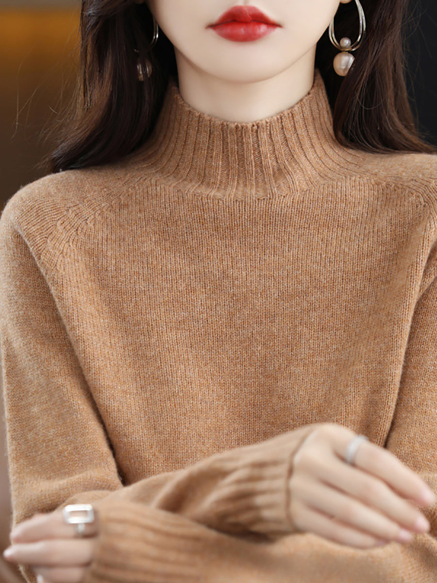 Women Autumn Artsy Pure Color Knitted Turtleneck Sweater