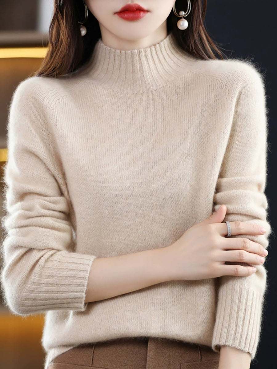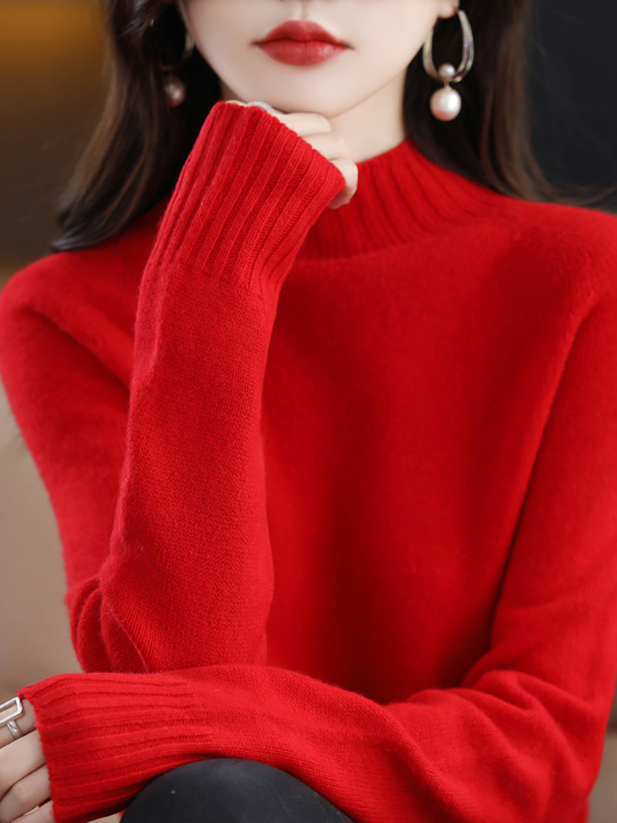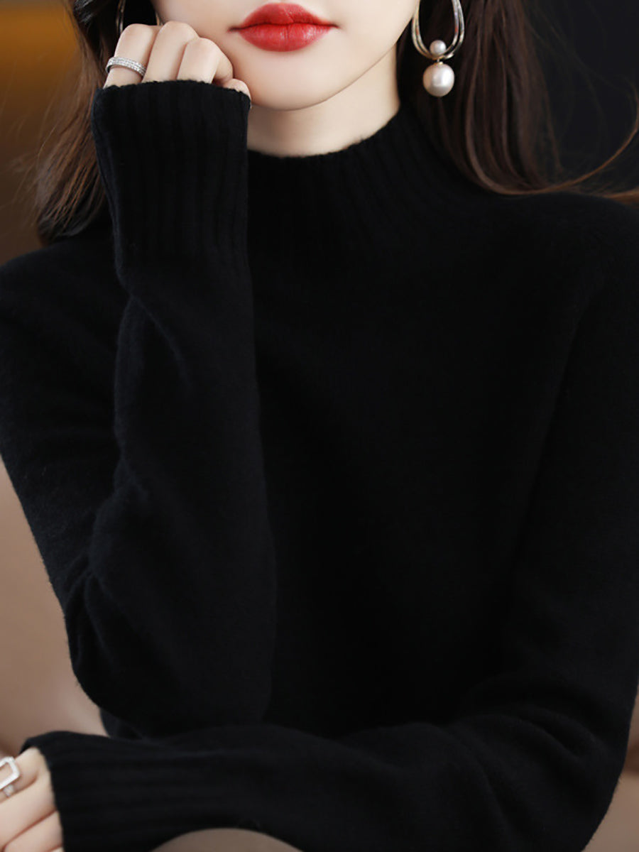 Women Autumn Artsy Pure Color Knitted Turtleneck Sweater
