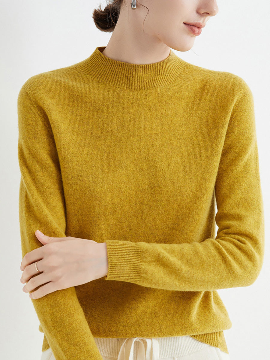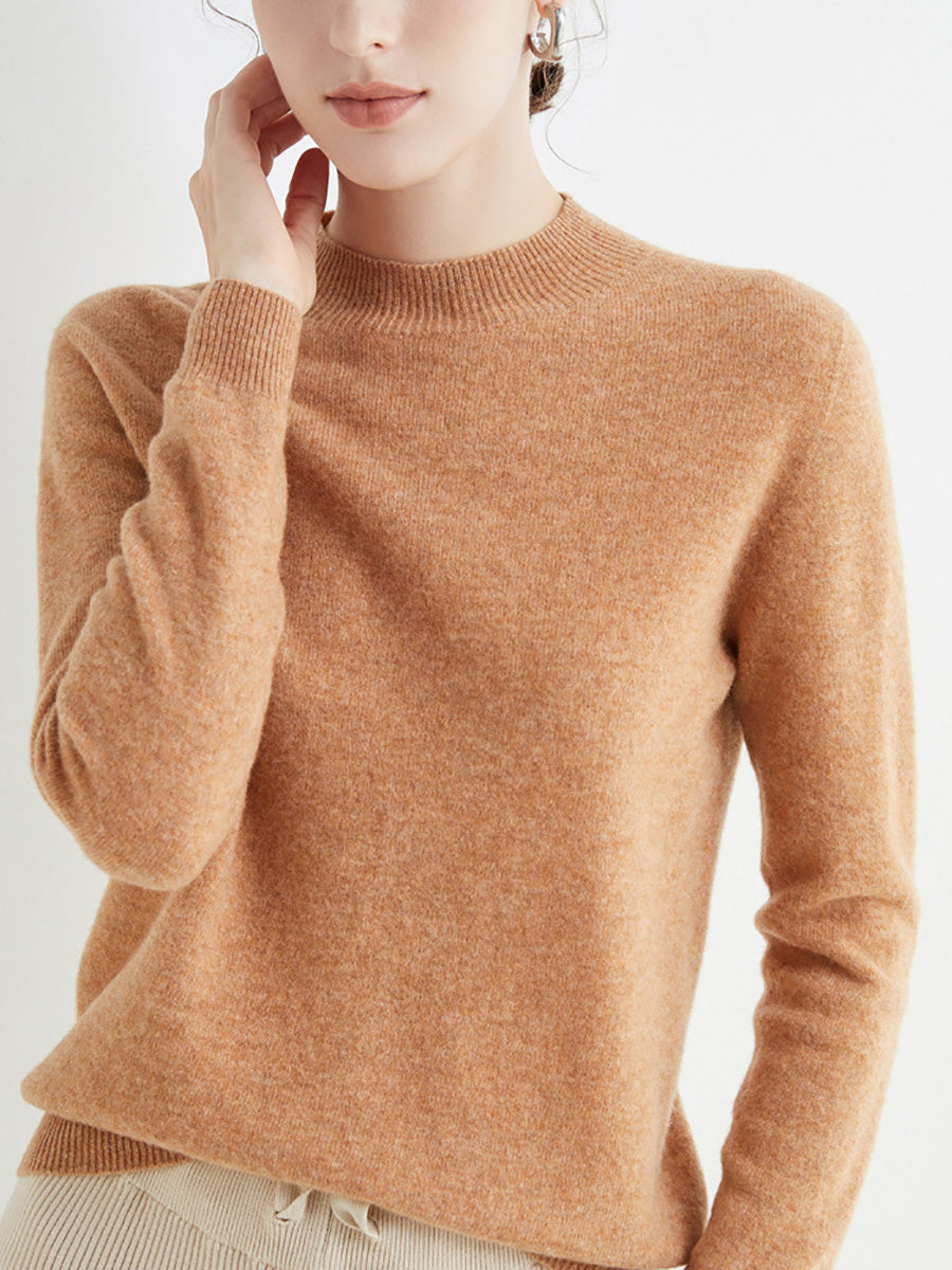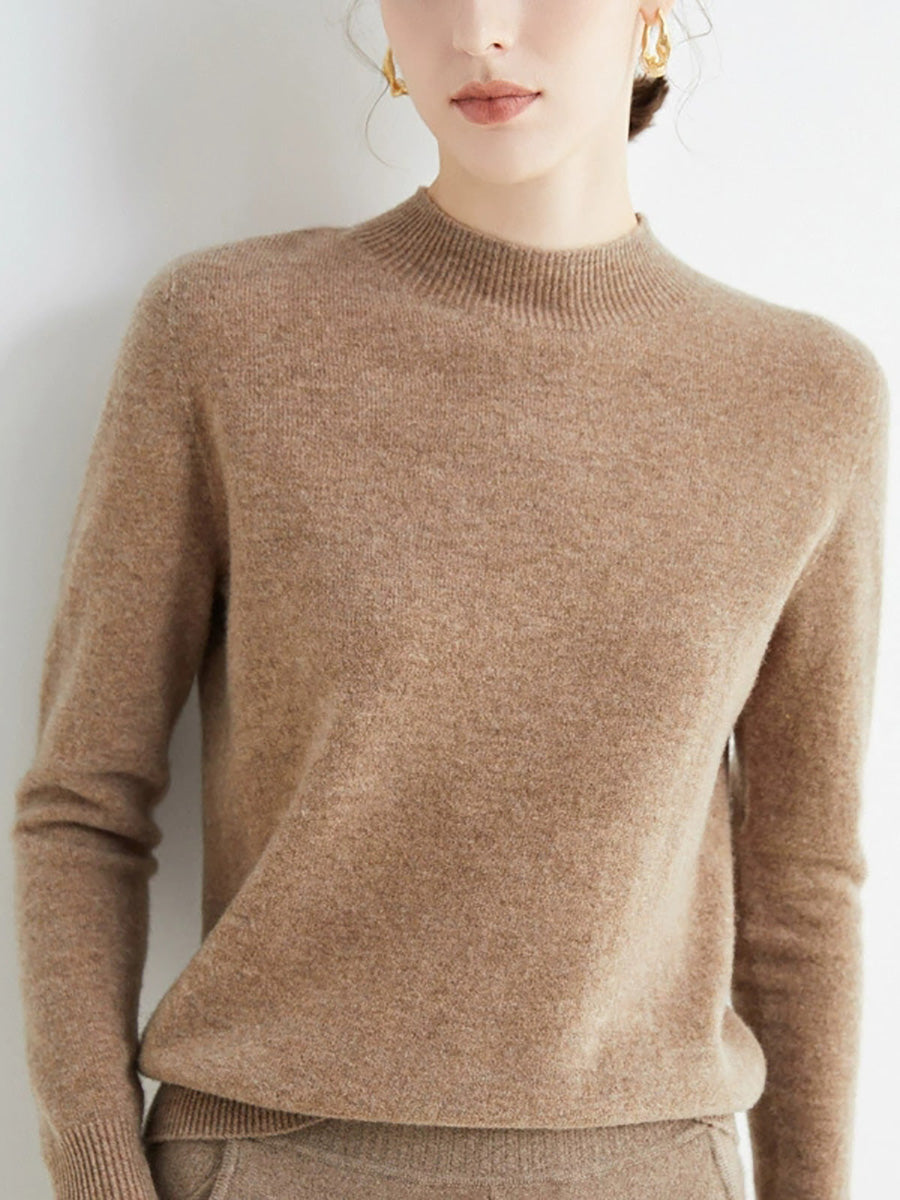 Women Autumn Artsy Pure Color Wool Half-Turtleneck Sweater