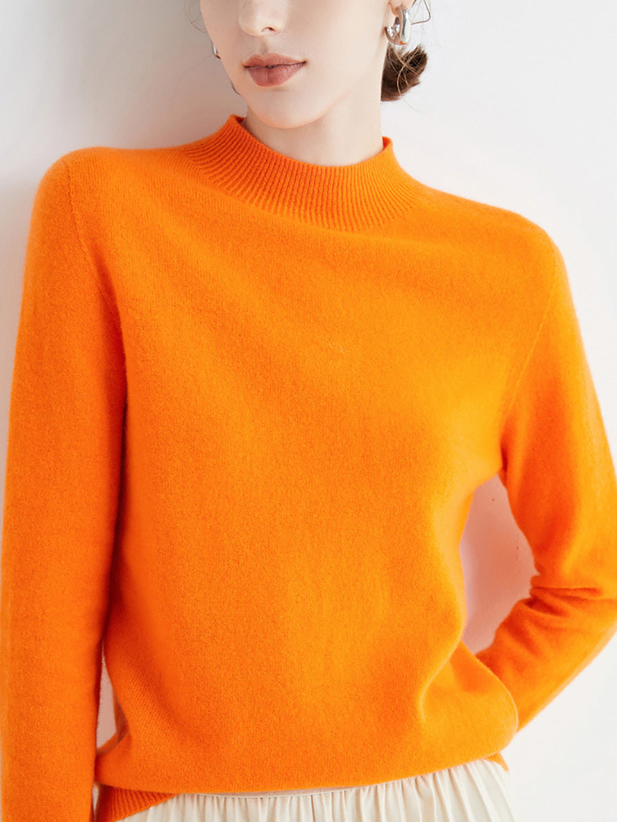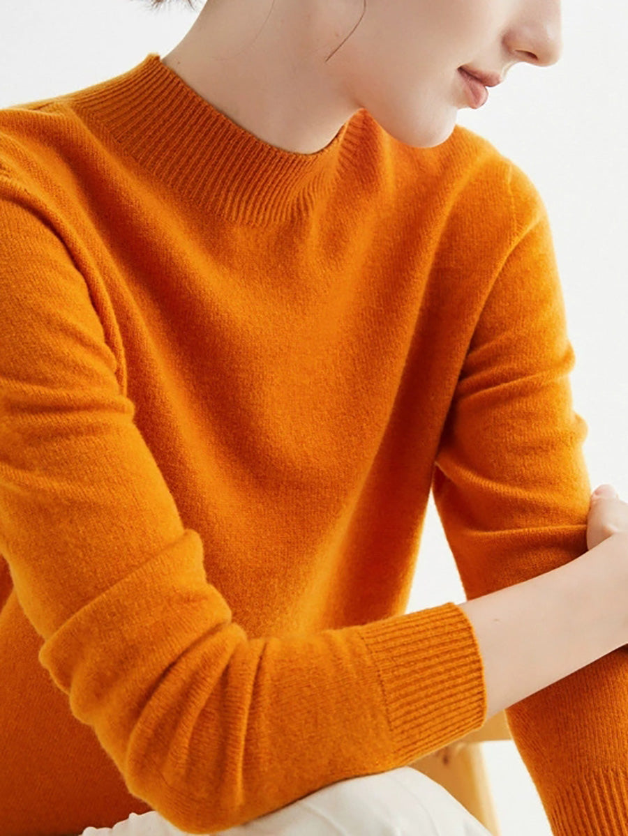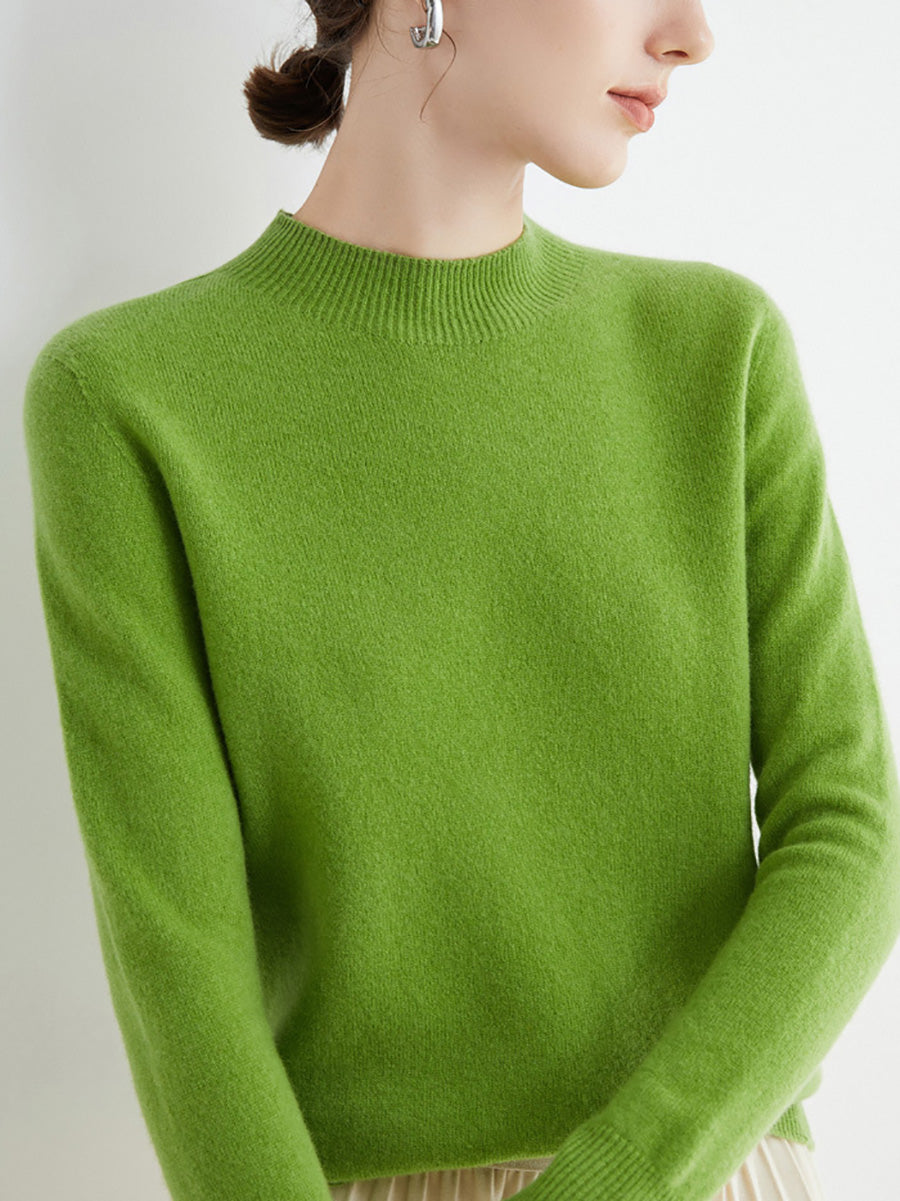 Women Autumn Artsy Pure Color Wool Half-Turtleneck Sweater