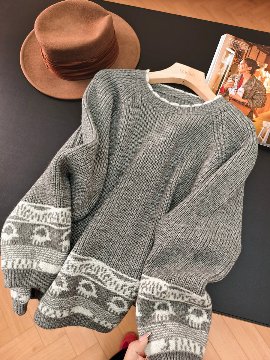 Women Autumn Cartoon Knitted O-Neck Sweater