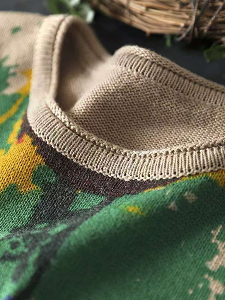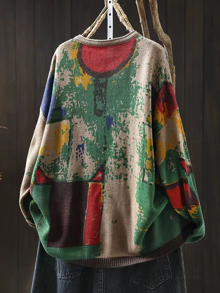 Expertly crafted from high-quality cotton, this knitted sweater features a stylish colorblock pattern and an elegant O-neck collar. With full-length raglan sleeves and an artsy design, it's the perfect addition to your winter and autumn wardrobe.