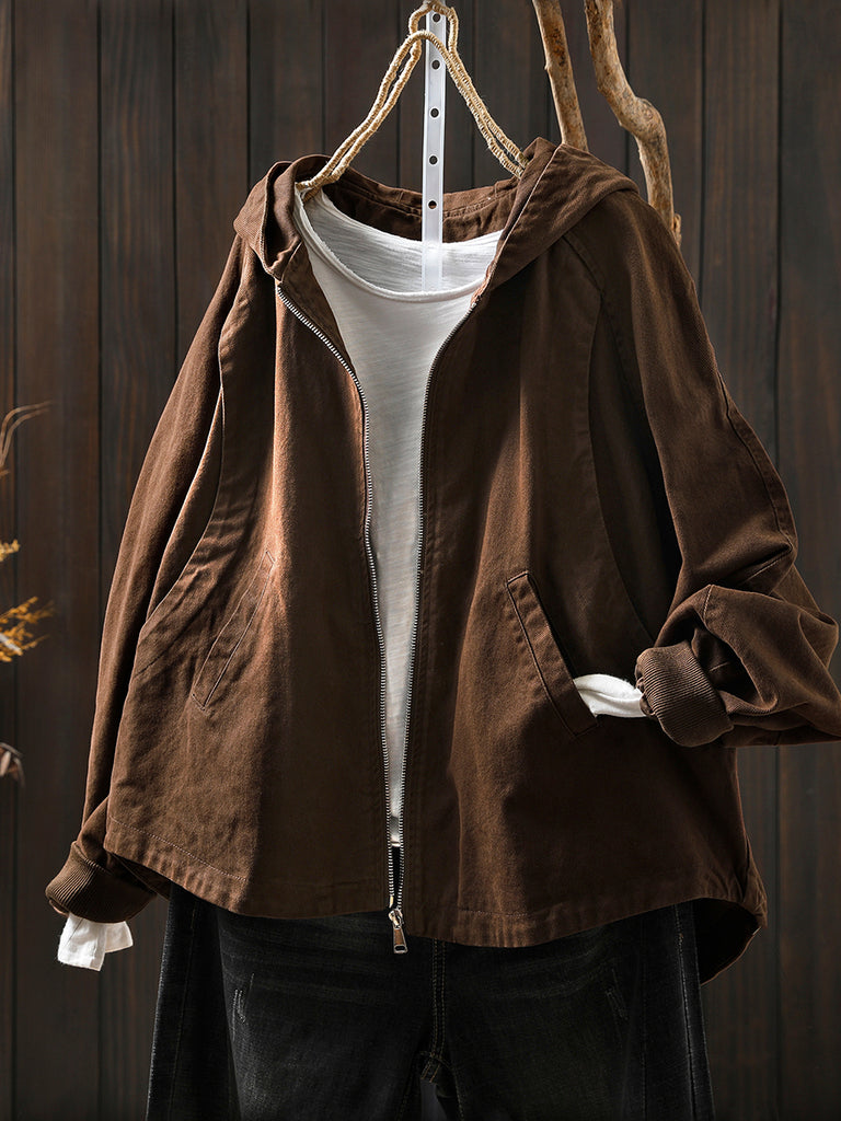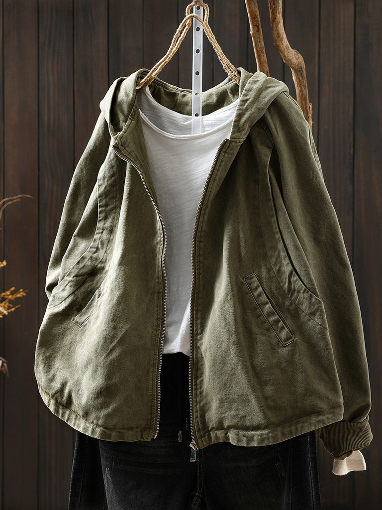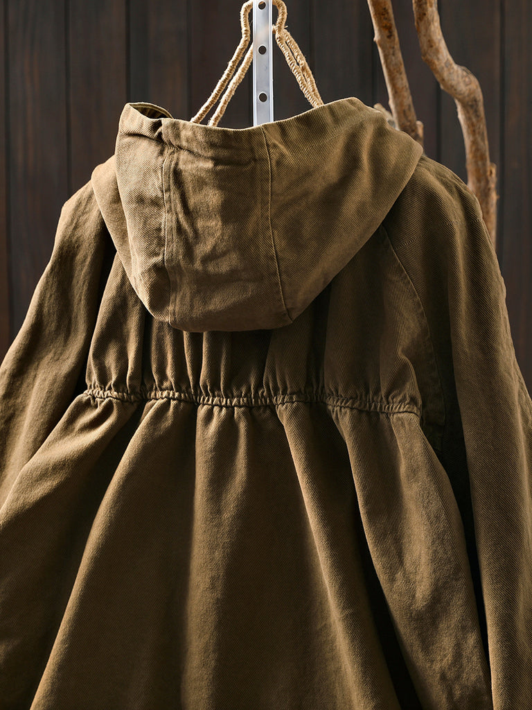 Women Autumn Casual Pure Color Hooded Cotton Coat