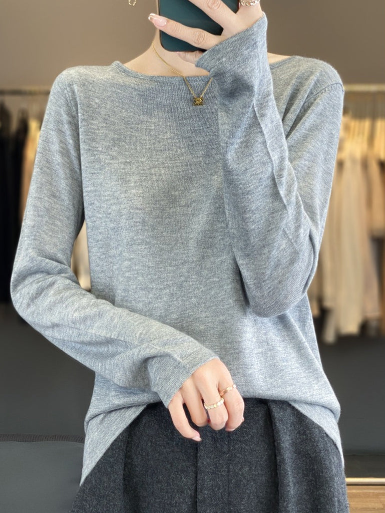 Women Autumn Casual Pure Color O-Neck Knit Sweater
