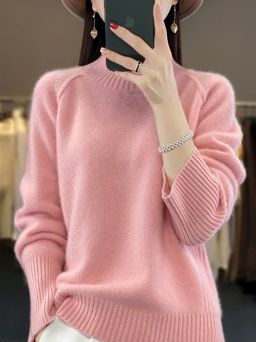 Women Autumn Casual Pure Color Turtleneck Sweater