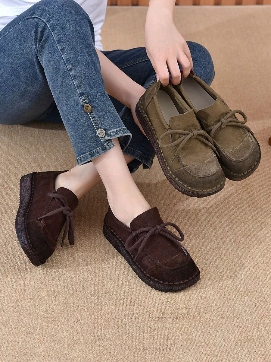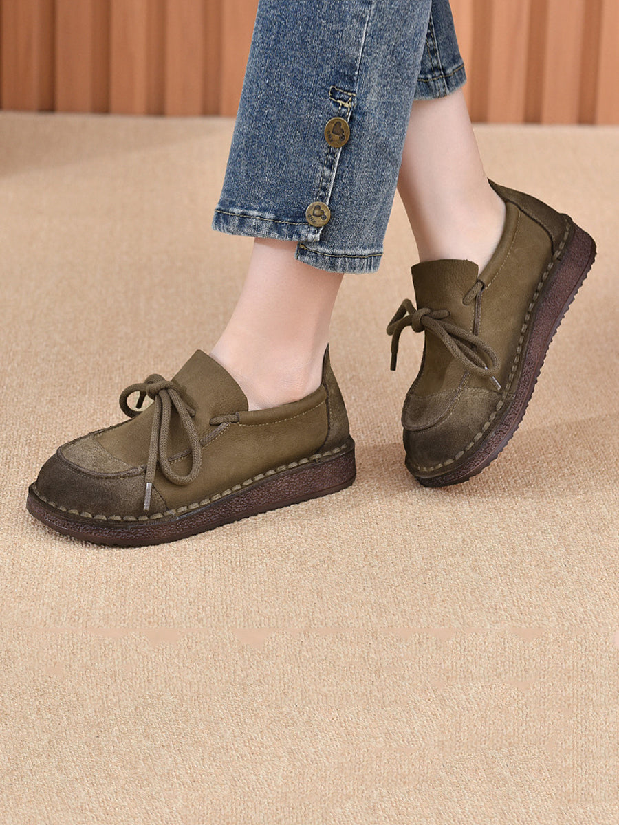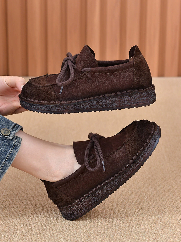 Women Autumn Genuine Leather Spliced Flat Shoes