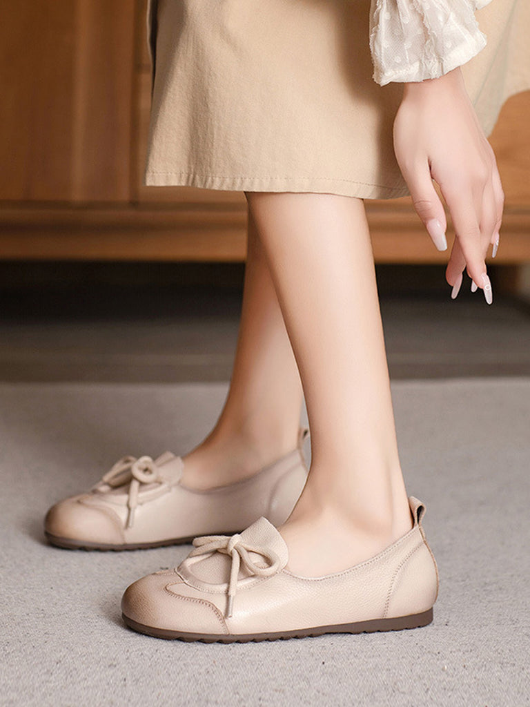 Women Autumn Genuine Leather Spliced Strap Flat Shoes
